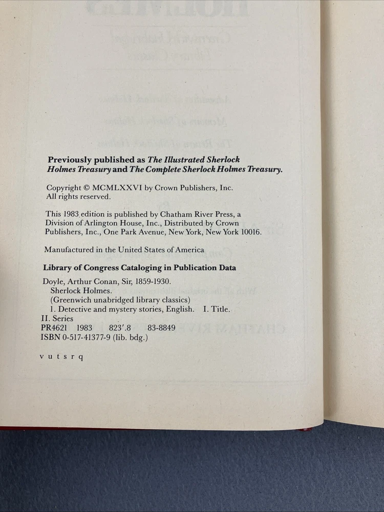 Sir Arthur Conan Doyle Greenwich Unabridged Library Classics Leather bound VERY GOOD CONDITION -- CLEAN COPY/NO MARKINGS ON THE INSIDE (see pics) *Item will be protected well for shipping and comes with a tracking number for confirmation.* I ship out items every day so expect a quick delivery!