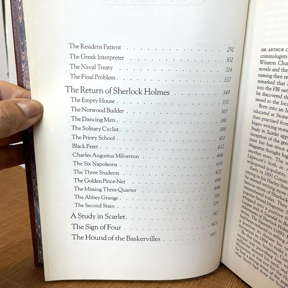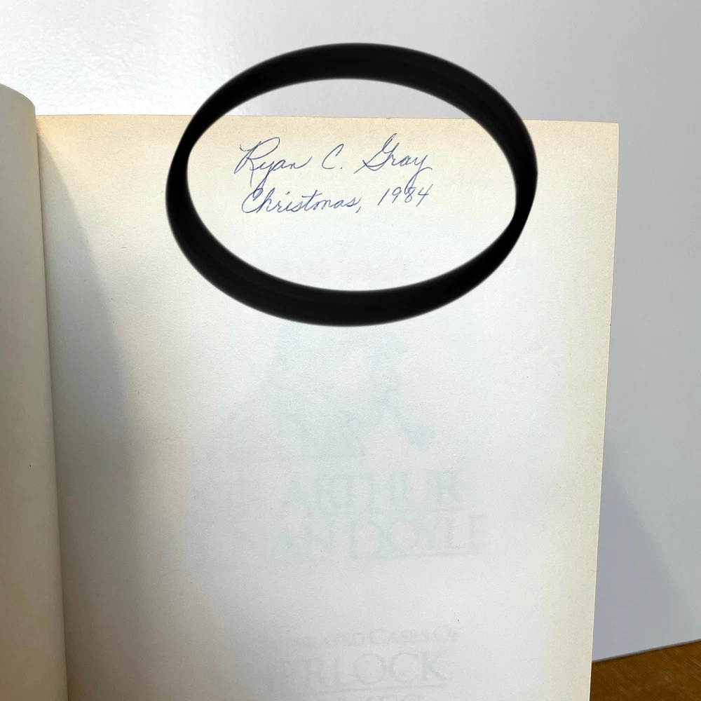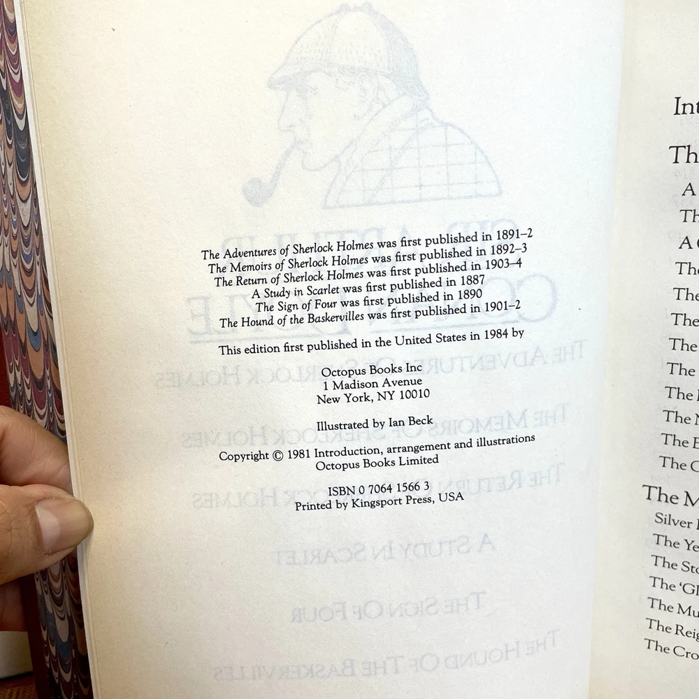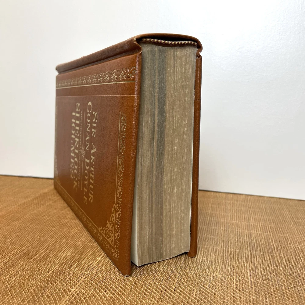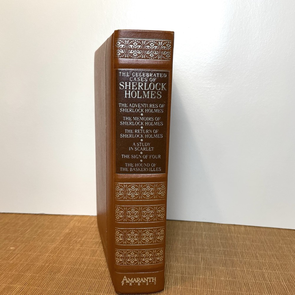 Delve into the world of mystery and intrigue with "The Celebrated Cases of Sherlock Holmes" by Sir Arthur Conan Doyle. This 1984 leather-bound edition published by Octopus Books Inc brings the iconic detective to life through 799 pages of captivating storytelling. The hardcover format and leather binding add a touch of vintage charm to this classic crime and thriller genre book. This book is in excellent condition for its age. Has normal old book musk odor but it is not too strong. Measures 9”x6”x2”. Does has an inscription in the top first page (see circled photo). See all photos for design, details and condition. Selling as-is.