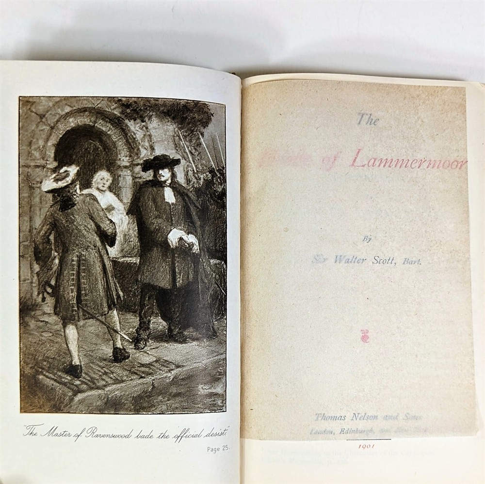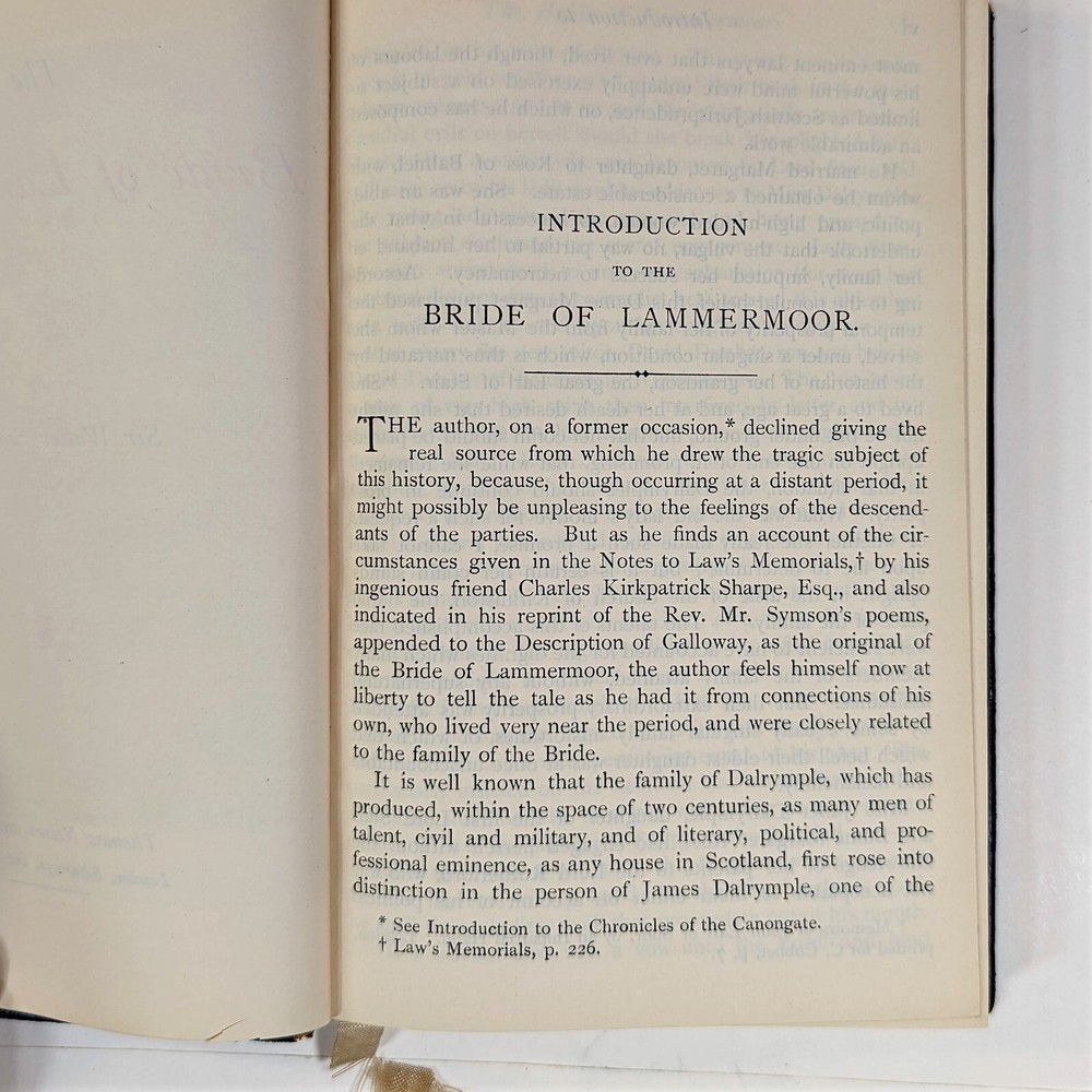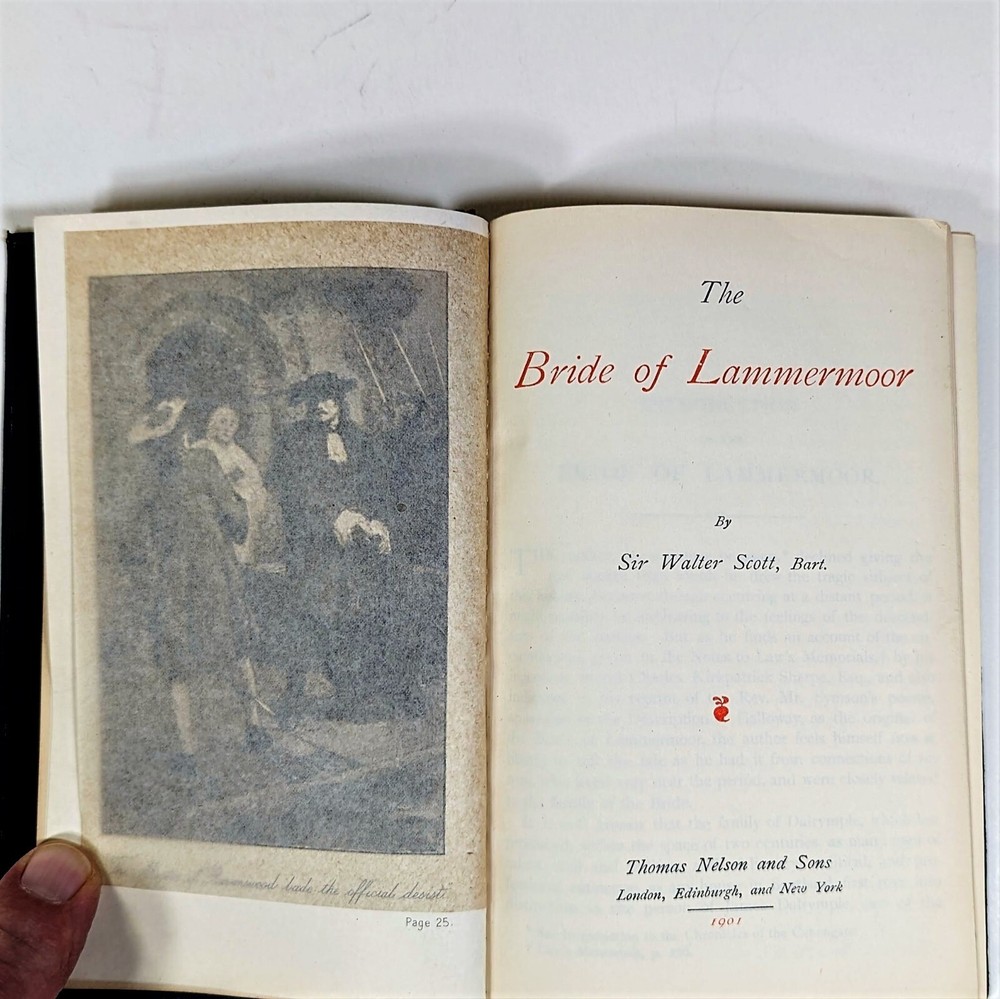 The Bride of Lammermoor by Sir Walter Scott, Bart. 1901 Antique Leather cover boards Very good condition with normal wear for an antique Thomas Nelson & Sons New Century Library - The Works of Sir Walter Scott, Bart. Vol. VIII. Tales of my Landlord. - Third Series Step into the world of classic literature with "The Bride of Lammermoor" published by Thomas Nelson in 1901. This beautiful, comfortably worn, leather-bound edition is the perfect addition to any library, both for its timeless story and its stunning spline and gilded pages.. The novel, written by Sir Walter Scott, is set in the 16th century and tells the story of a young woman caught in a power struggle between her family and her heart. With a blend of romance and tragedy, "The Bride of Lammermoor" is a timeless classic that continues to captivate audiences today. Whether you're a fan of classic literature or just looking to add a touch of elegance to your library, "The Bride of Lammermoor" published by Thomas Nelson in 1901 is a must-have. Order now and immerse yourself in the timeless story of love, passion, and tragedy. From a pet-free and smoke-free home. Book poly bagged for protection. We carefully pack and promptly ship via Media Mail; Priority Mail is optional.