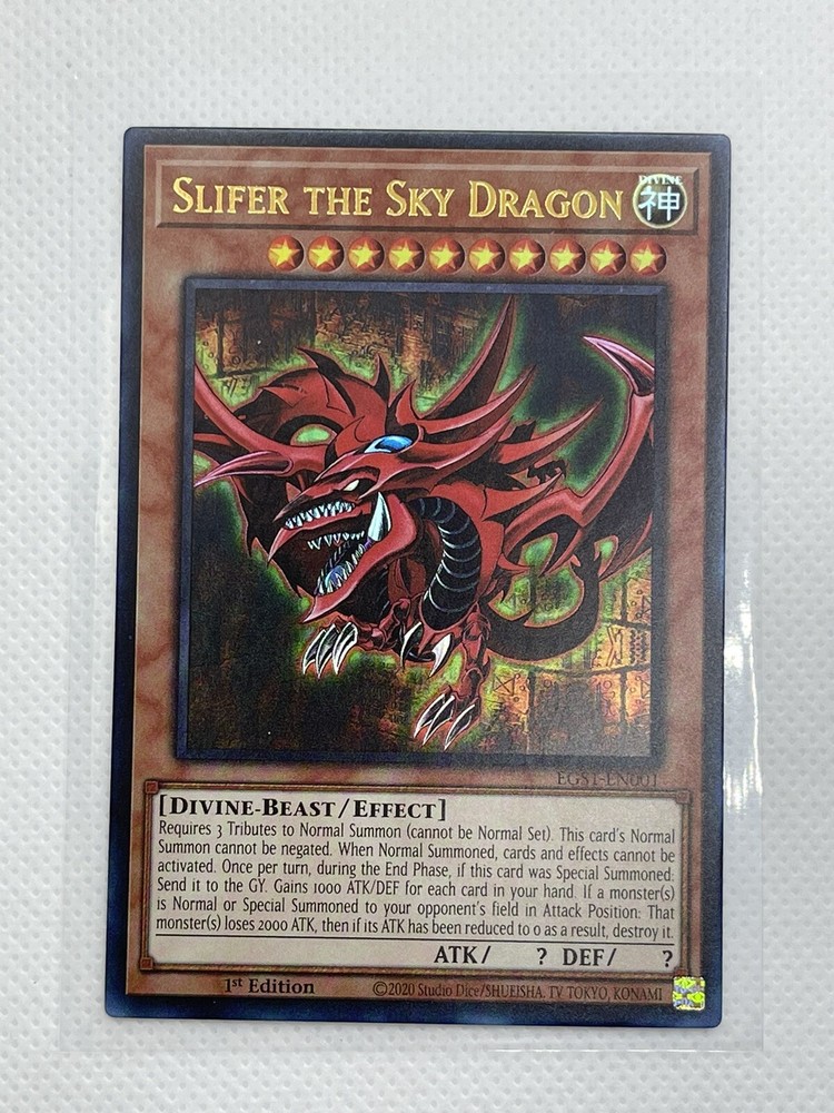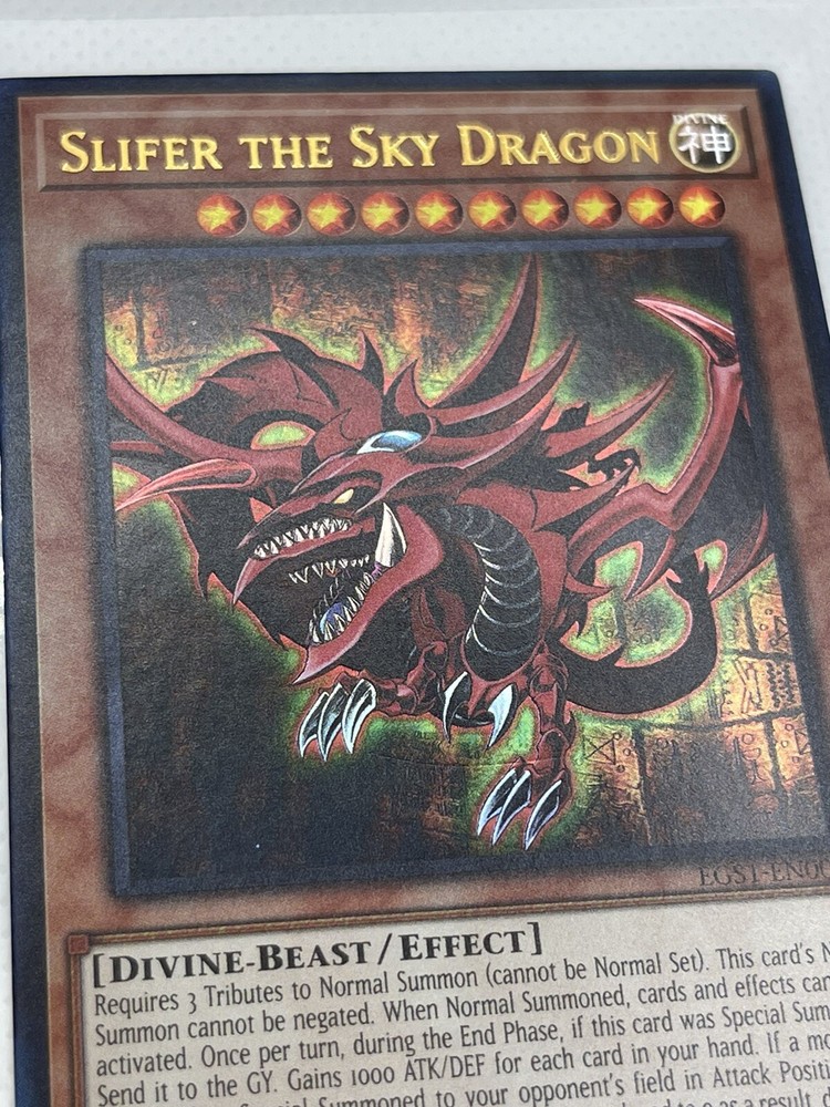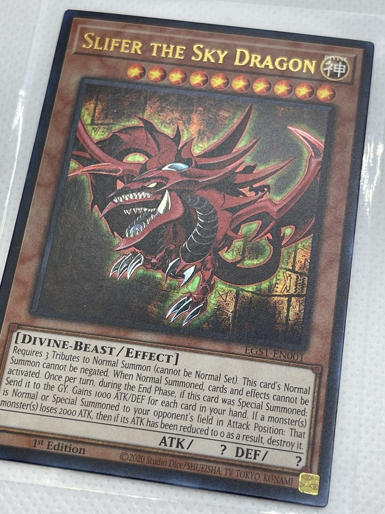 Free eBay listing template designed by dewiso.com Item: Slifer The Sky Dragon EGS1-EN001 - Ultra Rare 1st Edition Condition: New fresh from pack to penny sleeve and top loader as shown. Set: Egyptian God Deck: Slifer The Sky Dragon 1st Edition *All cards are stored in penny sleeves and/or a semi rigid card holder or toploader. Product We utilize a Neatfi Bifocals Super LED Magnifying Lamp to check all the quality, condition and authenticity of all cards. We also ensure we give the best pricing to condition of each card. Shipping We ship all our cards safe and securely via USPS. We use the best mailers on the market which are 'Metronic Poly Bubble Mailer Crush Resistant & Waterproof'. All items are shipped with tracking number, we do not ship in envelopes or without tracking. Contact If you have any questions please don't hesitate to contact us via eBay messaging service. We aim to reply within 24hrs Returns/Exchanges/Lost & Damaged Mail We only offer returns on select products with a 30 day free returns policy, these will be noted on the listing when buying. Lost Mail - If for any unforeseen reason your mail is lost we will do our best to resolve the issue. Please open up a case with eBay and we will open a case with USPS on your behalf and see what resolution we can accommodate. Damaged Mail - We do our utmost to ensure packaging is sturdy, over protective and secure on each of our items regardless of price. Please open up a case with eBay and we will see what we can accommodate regarding any unforeseen damaged mail. *Please note we are not directly responsible for any lost or damaged mail. Thank You for taking the time to view this listing!! We wish you a great day! Many Thanks Scott & Briana Free eBay listing template designed by © dewiso.com .