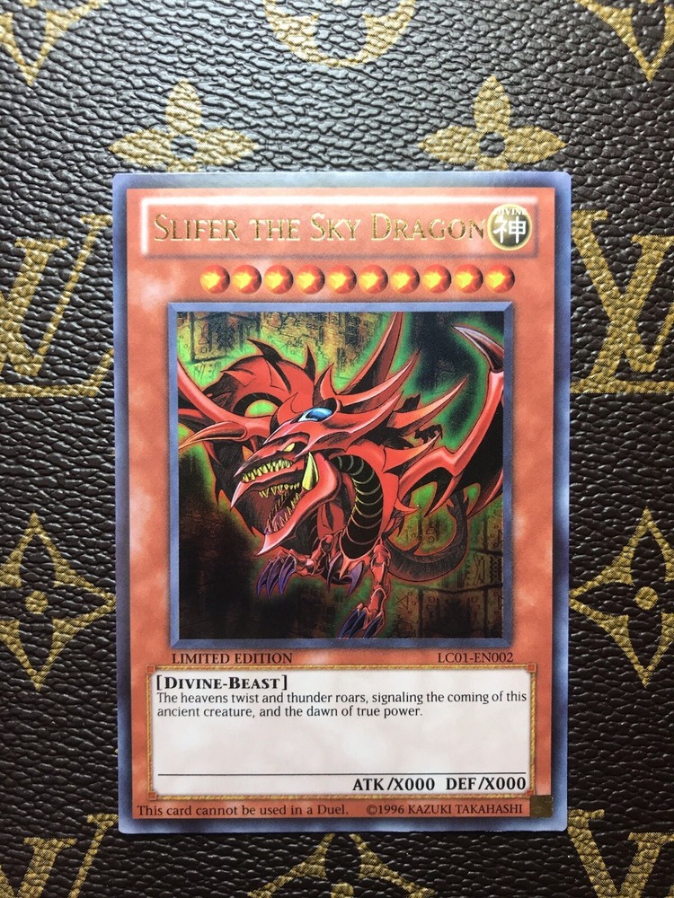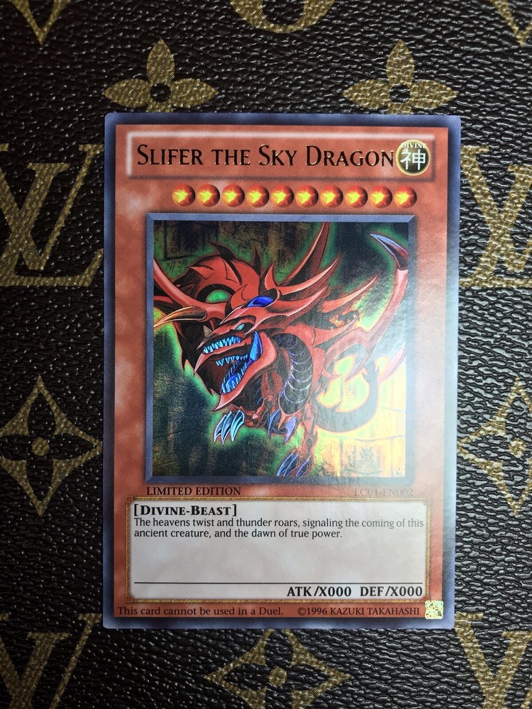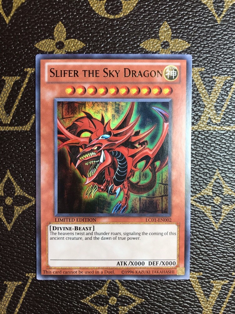 Slifer The Sky Dragon LC01-EN002 Limited Edition Ultra Rare Holo Foil YUGIOH. Condition is near Mint, taken out of box and put into sleeve! All cards are shipped with sleeves!!! Shipped with USPS First Class. OFFERS ACCEPTED, PRICES ALWAYS NEGOTIABLE