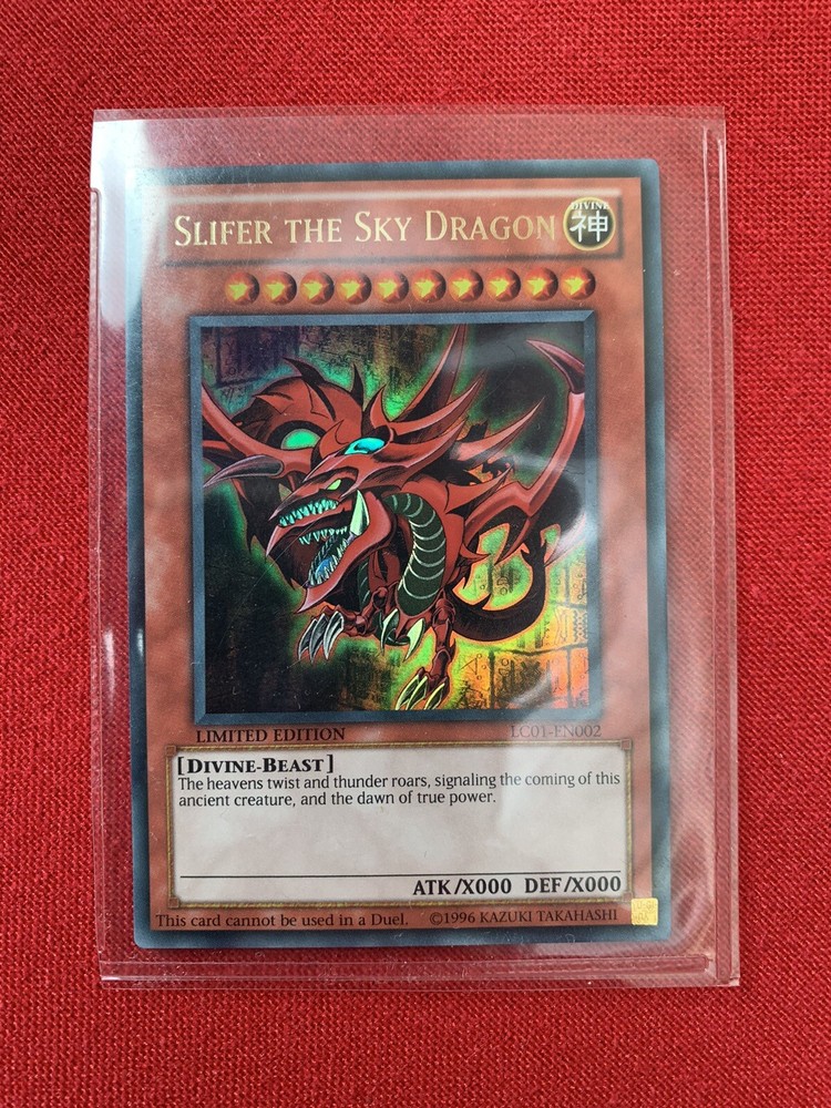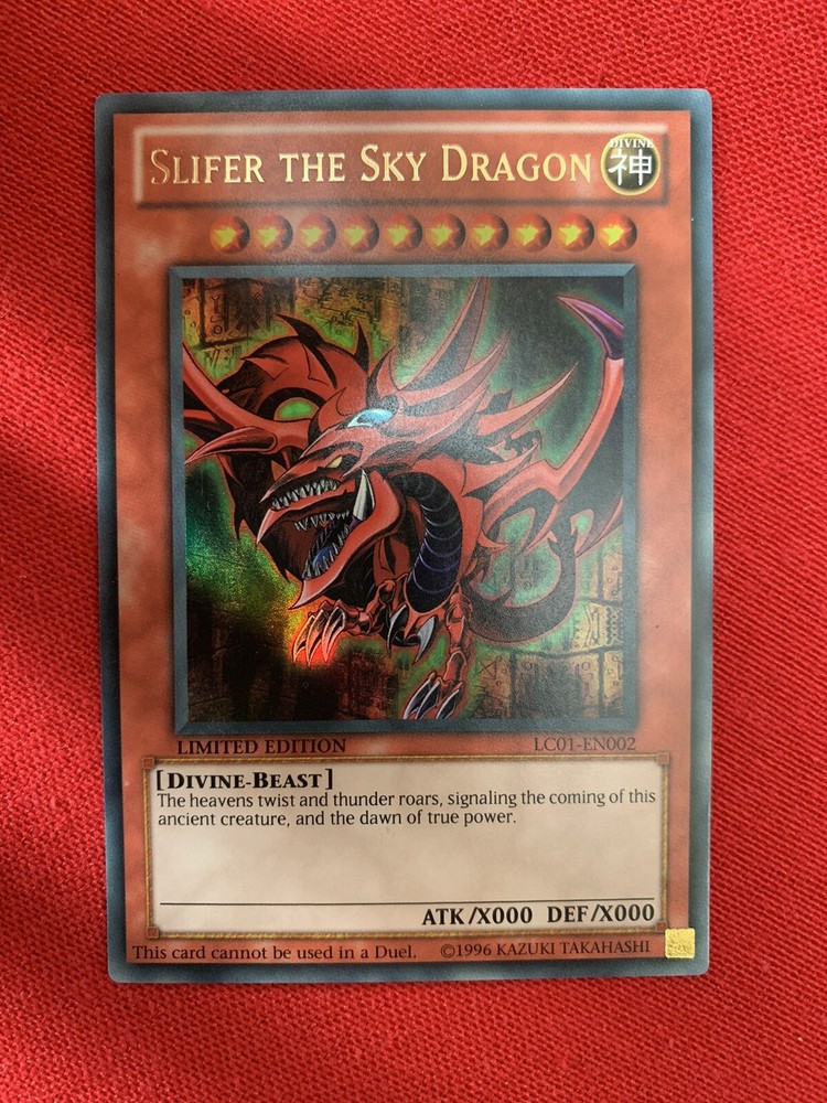 Slifer The Sky Dragon (LC01-EN002) Yu-Gi-Oh! Divine Beast Card - Limited Edition. The card is in very condition (please see the images) Slifer The Sky Dragon (LC01-EN002) - Divine-Beast - Limited Edition Holo - Very Good Condition (very light edge and corner wear) The item will be dispatched with Royal Mail 2nd Class Letter