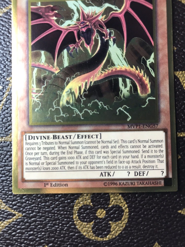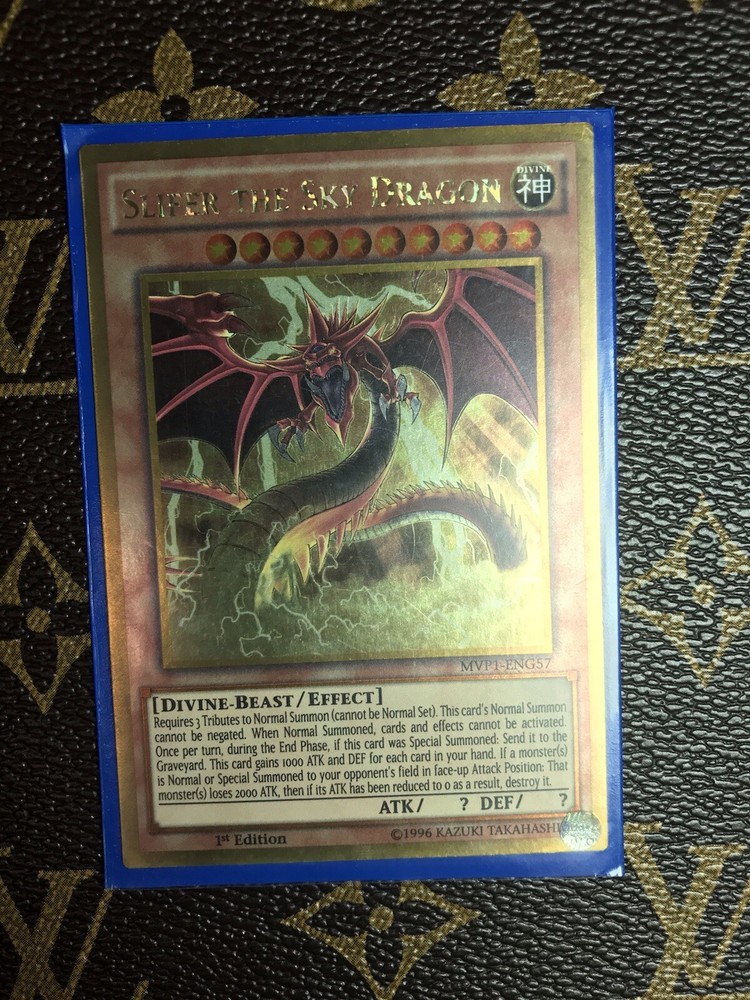 Slifer The Sky Dragon Mvp1-eng57 1st Edition Ultra Rare. Condition is near mint!! All cards are taken out of package and put into sleeve and shipped with sleeves!!! OFFERS ACCEPTED PRICE NEGOTIABLE