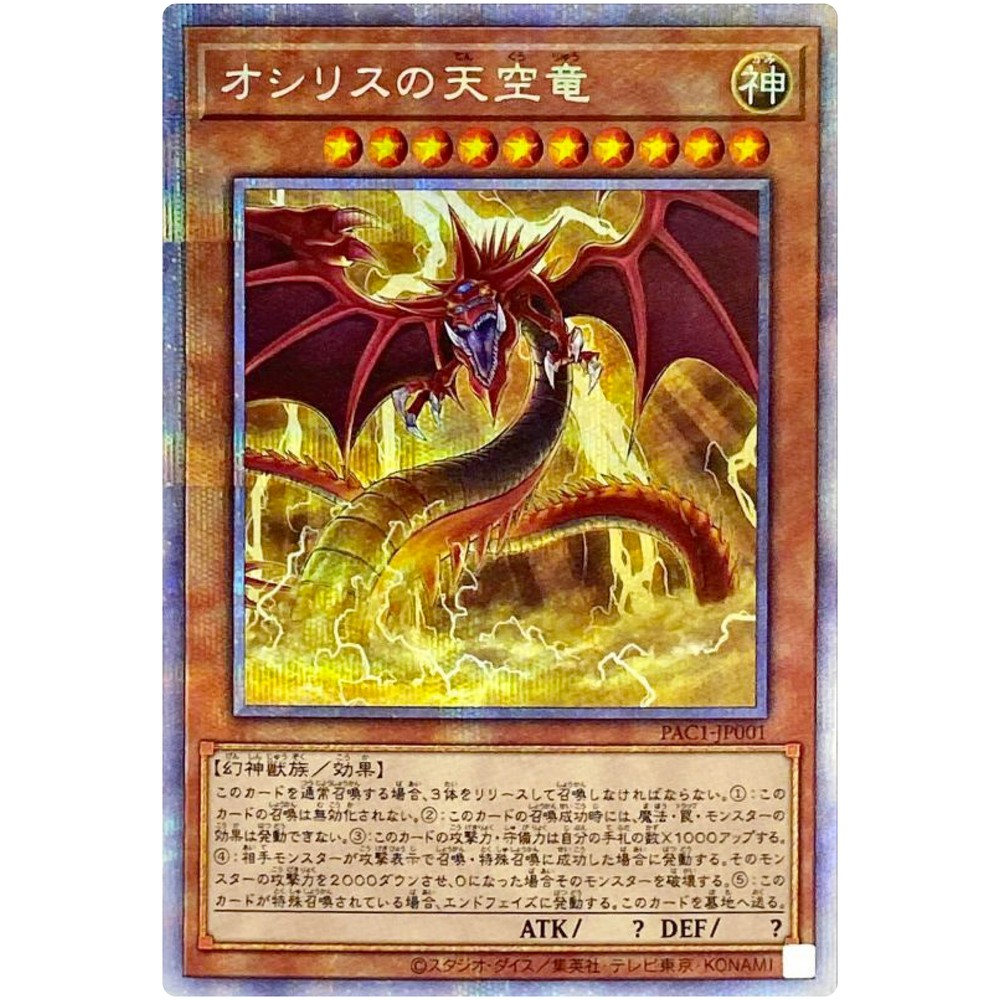 Item Discription PAC1-JP001 Slifer the Sky Dragon Front Back Card Name : Slifer the Sky Dragon Character : Slifer the Sky Dragon Rarity : Prismatic Secret Rare Card Number : PAC1-JP001 Set : Prismatic Art Collection Type : Effect Monster Language : Japanese Card Condition : Near Mint Purchased cards will be clipped with cardboard, waterproofed, and shipped without any scratches or folds. Cards over $20 will be packed even tighter with a loader for each card. Shipping Policy Free shipping worldwide. Free shipping does not include tracking. There is an additional cost of US $4 for tracking. If you purchase cards totaling US $30 or more, you will receive a free tracking number. All of the products will be shipped from Japan. Economy Shipping Air mail ( no tracking ) Free Shipping Delivery time : About 2-4 weeks Standard Shipping Air mail ( with tracking ) US $4 Delivery time : About 2-4 weeks Expedited Shipping FedEx or EMS or DHL ( with tracking ) US $24 Delivery time : About 1-2 weeks Payment Policy We accept all major credit cards and Paypal payments. Return Policy We hope you will love your purchase, houever if you need to return it, we have a 30 day return policy. International Buyers Import duties, taxes, and charges are not included in the item price or shipping cost. These charges are the buyerʼs responsibility. Please check with your countryʼs customs office to determine what these additional costs will be prior to bidding or buying. If the cancellation is due to the buyer, wewill charge a fee. If there is a remote charge for your address, we will charge you for additional shipping. We are honored to receive the eBay Japan Awards 2022! I am thrilled to share that my store has won the eBay Japan Awards 2022 ! This amazing accomplishment wouldnʼt have been possible without our wonderful customers. A heartfelt thank you for your ongoing support. We will continue to improve our services, offering a diverse selection of items and top-notch customer care Thank you for helping us achieve this prestigous recognition, and we look forward to serving you in the future! Copyright ©️ 2023 Animart Japan
