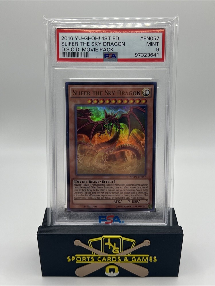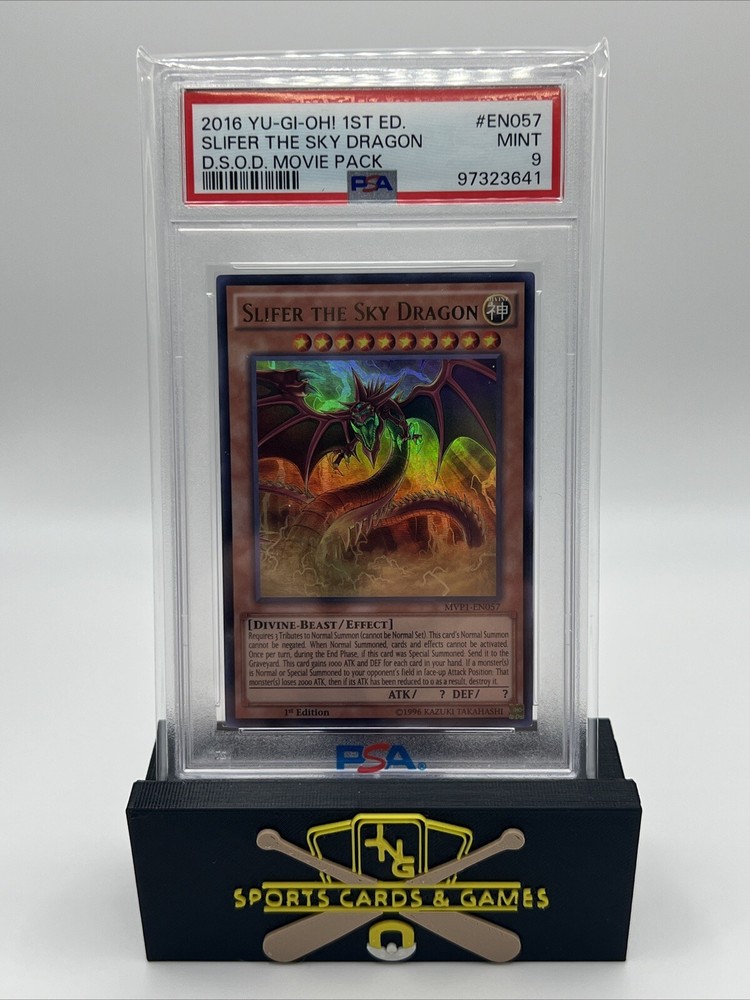 This is a rare and limited edition card of Slifer The Sky Dragon from the Yu-Gi-Oh! TCG game. It is part of the MVP1-ENSV6 card number series and belongs to the Divine-Beast creature/monster type. This card is an ultra rare and secret edition from the Konami manufacturer, with English language and a divine color attribute. The card's name is "Slifer The Sky Dragon" and it is an effect type card with rarity and language attributes. It belongs to the Collectible Card Games category and is perfect for individual card collectors. Get your hands on this highly sought after card and add it to your collection now!