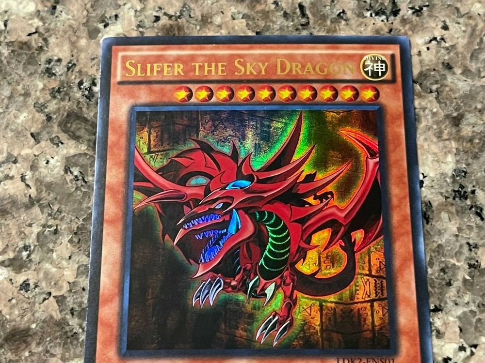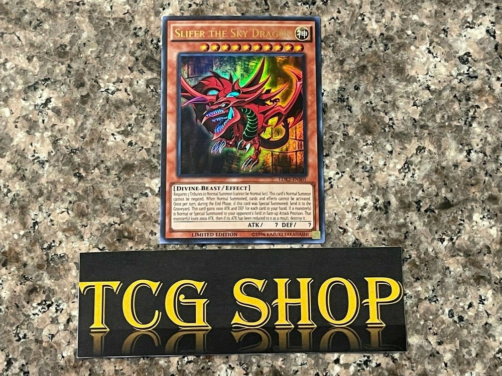 Slifer the Sky Dragon! Yu-Gi-Oh! Egyptian God Card! Near Mint! This card will ship in a SEXY Dark Magician Girl Custom Sleeve (see last photo above), high-quality top-loader and bubble mailer! If you would prefer a less sexy card sleeve, just send a message and let us know! Also, please visit our page to browse through the excellent selection of rare, vintage Yu-Gi-Oh! cards!