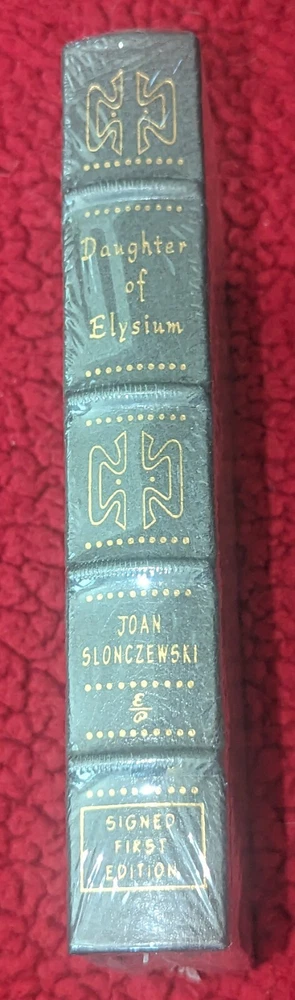Bayside Books of Maryland presents ... Daughter of Elysium Author: Slonczewski, Joan Publisher: The Easton Press Release Date: 1993 Seller Category: -- Qty Available: 1 Condition: Collectible: Excellent Notes: As New, in publisher's original shrinkwrap. 1993. Part of the Easton Press Signed First Edition series. Personally signed by Joan Slonczewski. Full color illustration by Pat Morrissey. Introduction by James Gunn. Full bound in hunter green leather. 22kt gold designs and lettering on the hubbed spine and both boards. Smyth sewn pages, with bound satin-ribbon page marker. All edges gilt. Printed on archival quality paper especially milled for this edition. It is acid-neutral and conforms to all guidelines established for permanence and durability by the Council of Library Resources and the American National Standards Institute. No jacket as issued. Don't forget to check out other great deals in our eBay Store!!