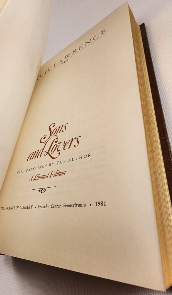Sons and Lovers D.H.Lawrence Franklin Library Limited Edition Leather Bound 1981 Hardcover Very Good condition, appears unread, clean copy. Ding/rub on one corner as shown. View photos for details. International buyers, please note: Import duties, taxes, and charges (typically collected upon delivery or pickup) are the buyer’s responsibility and are not included in the item price or shipping charges. Please check with your country’s customs office prior to bidding/buying to determine what these additional costs will be.