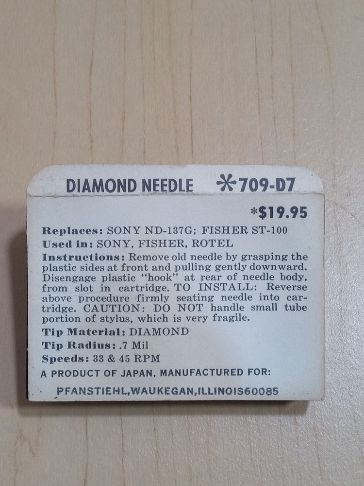 The Sony ND-137G, Fisher ST-100, Pfanstiehl 709-D7 NOS Stylus is a yellow needle designed for use with Sony and Fisher brand turntables. This stylus, manufactured by Pfanstiehl, is a new old stock (NOS) item and is compatible with specific models such as the Sony ND-137G and Fisher ST-100. It is a crucial component for maintaining the optimal performance of record players and turntables, ensuring high-quality sound reproduction during playback.