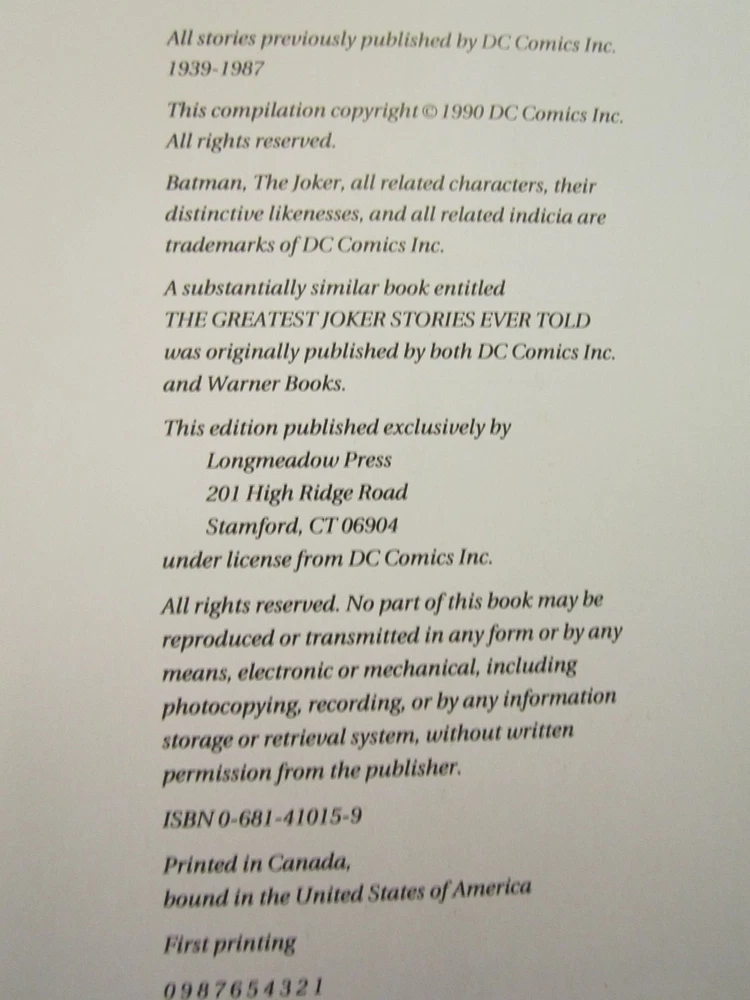 Hard bound compilation of DC Comics greatest Joker stories ever told Powered by ExportYourStore.com