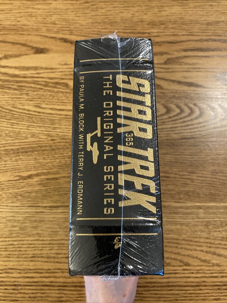 Star Trek 365: The Original Series by Paula Block with Terry Erdmann (2010 Leatherbound Easton Press Special Limited Edition) NEW The book is brand new, still in the original wrapping, and in excellent condition. Please see the photos for a better look at the condition of the book (see photos). I can only provide the listed photos since the book is in the original wrapping from the publisher. The book comes from an estate sale of avid readers. Their hope was to pass the books along to the future readers, or those scholarly individuals who love to read and learn. Includes free shipping and I also accept offers. Thank you for your consideration. ------------------------------------------------------------------------------------------------------------------------------------------------------------------ We appreciate your interest and business. We do our best to sell our books at the lowest price possible, and many of them come from distinguished professors and professionals from a university setting. **IF YOU SEE ANOTHER BOOK IN MY INVENTORY OF INTEREST, PLEASE MESSAGE ME, I AM WILLING TO PROVIDE A DISCOUNT FOR PURCHASING MORE THAN ONE ITEM**