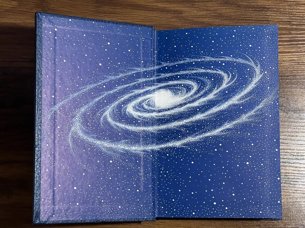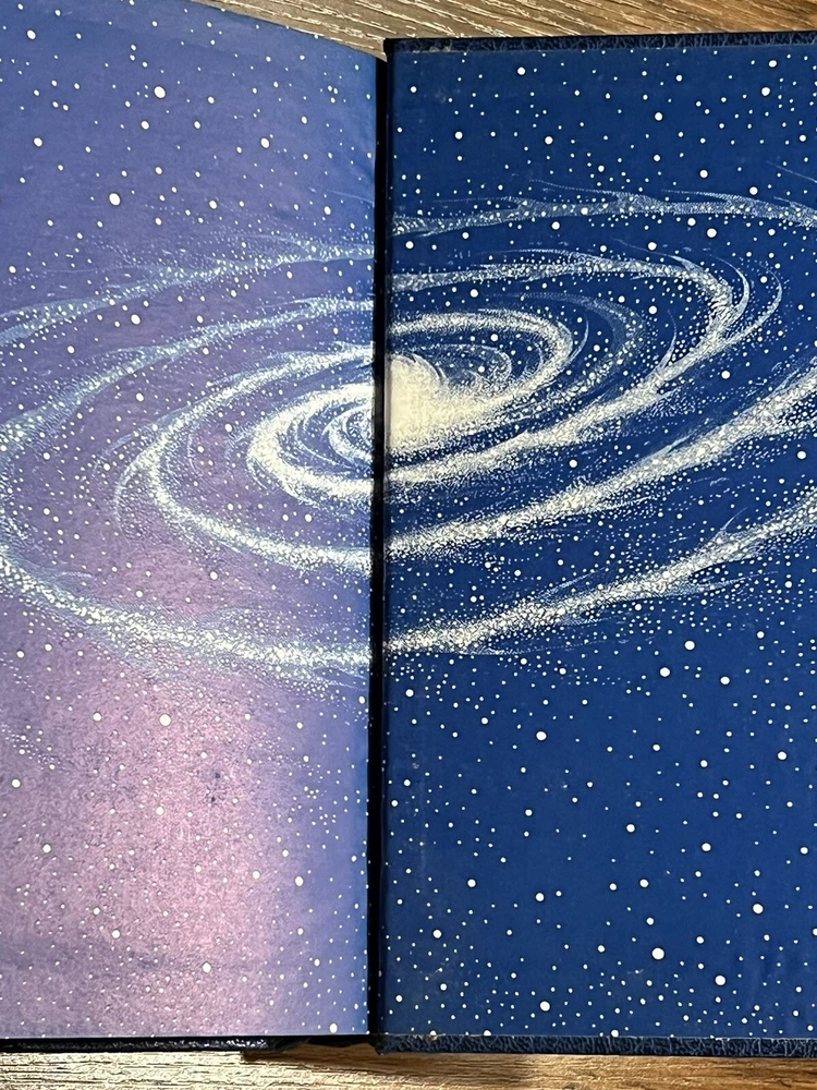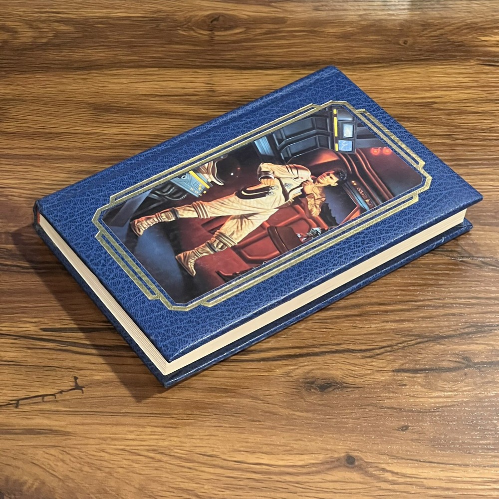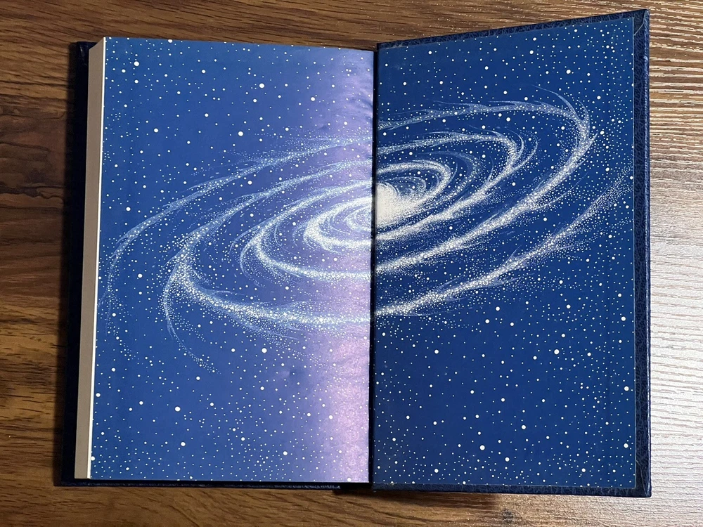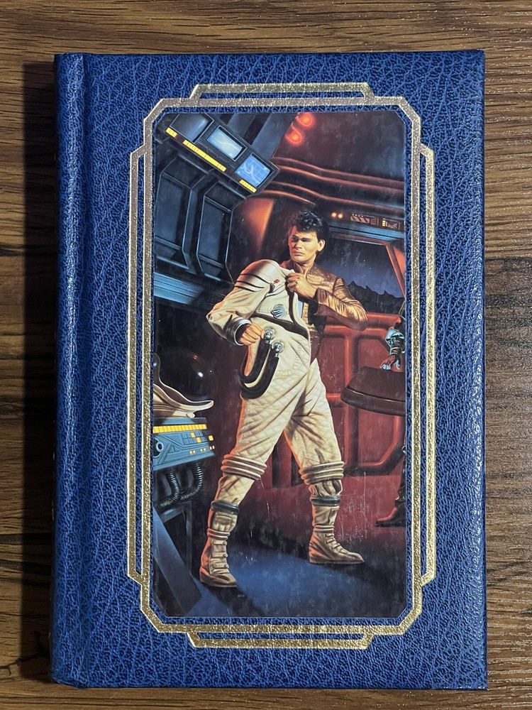 This is a used faux leather Doubleday edition of “stars, like dust” the leather is slightly wrinkled on the lower past of the spine. Please review all pictures carefully before purchasing, as they depict the exact item for sale.