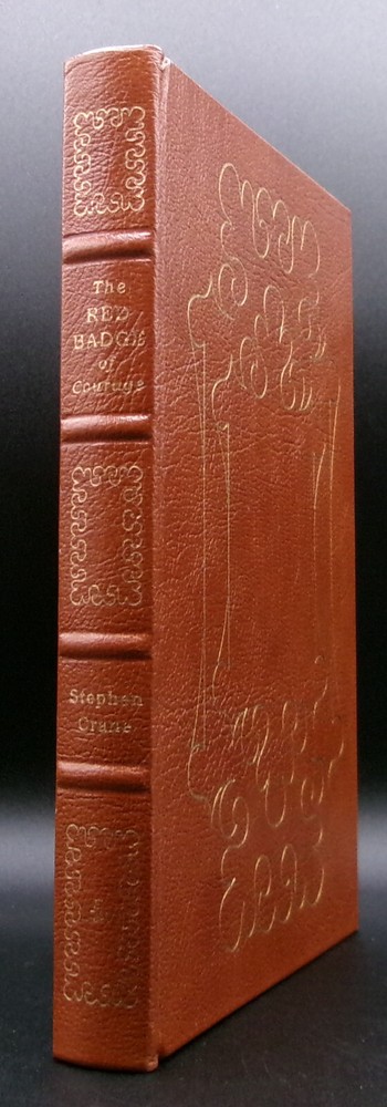 THE RED BADGE OF COURAGE by Stephen Crane. Introduction by Carl Van Doren. Norwalk, Connecticut: The Easton Press, (1980). Collector's Edition, The 100 Greatest Books Ever Written Series. Frontispiece portrait art by Edward Vebell specially commissioned for this Easton Press edition. Evocatively illustrated throughout by John Steuart Curry. Adapted to several plays and films including the John Huston directed 1951 movie starring Audie Murphy and the Lee Philips directed 1974 TV film starring Richard Thomas. Easton Press bookplate, with former owner's name typed-in, attached to the verso of the front end-paper, else fine in cinnamon-brown leather with patterned gilt embossed decorations to the front and rear covers, gilt embossed decorations and titles to the raised four-band hubbed spine, brown-and-yellow headband and tail-band, all page edges gilt, cinnamon-burgundy satin-moire end-papers, and a sewn-in silk ribbon marker. 10.25" by 7.2" by 1.25"; 170 pages; plus introduction, and publisher's preface. PLEASE VIEW OUR STORE FOR MORE GREAT ILLUSTRATED BOOKS THANKS! Created by eBay Seller's Assistant Basic.