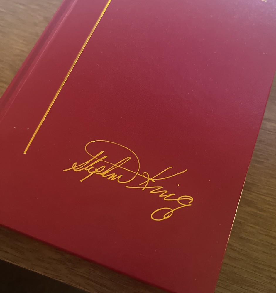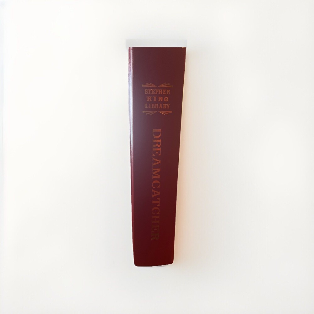 This is a limited edition red leather bound book titled "Dreamcatcher" by Stephen King, published by Scribner in 2001. It is a first edition collector's edition. The book features a leather binding and is part of the Stephen King Library Edition. THIS BOOK IS IN EXCELLENT CONDITION.