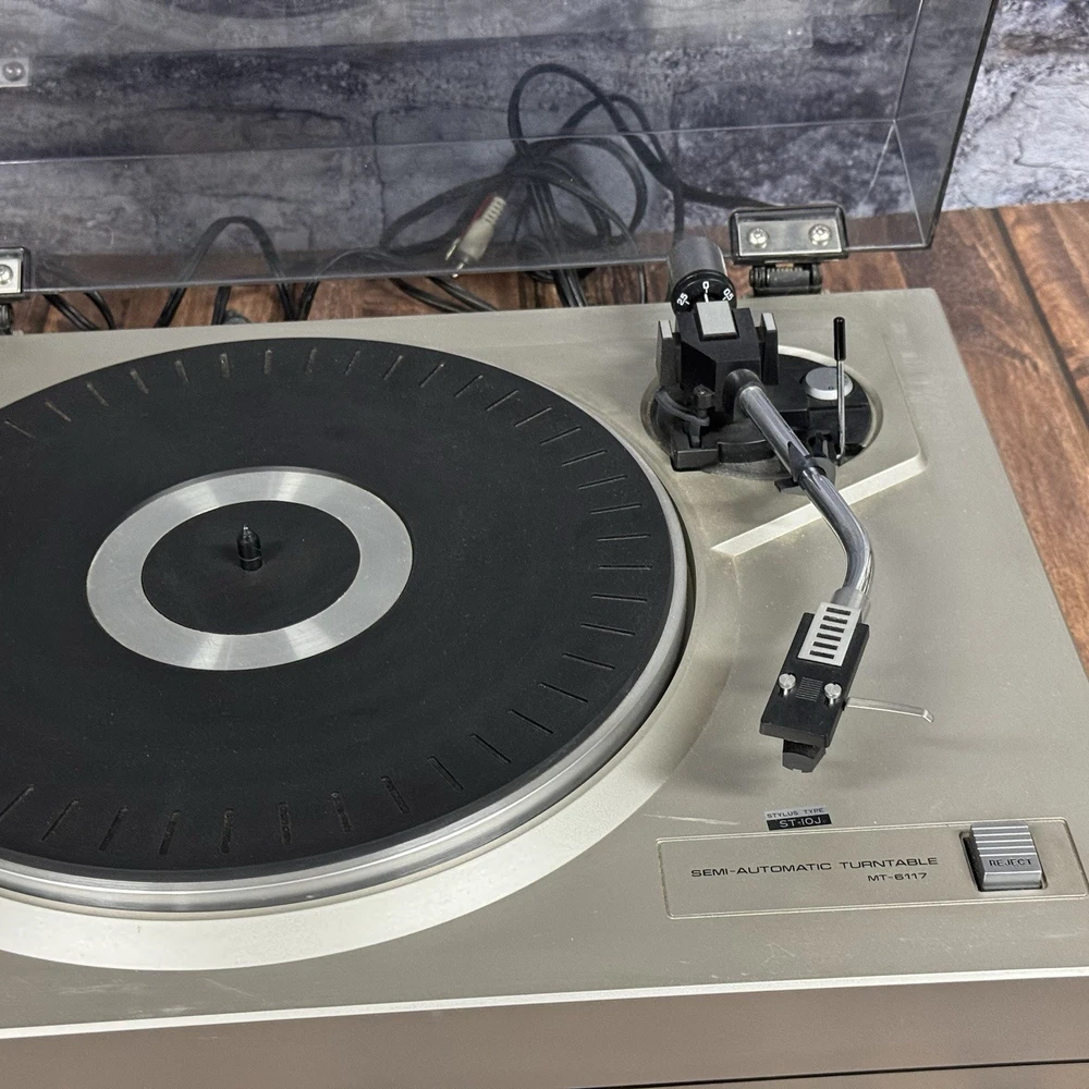 Studio Standard By Fisher Semi Automatic Turntable MT-6117 Record Player For parts. Table turns. Can’t switch to 45. Stylus also needs some work.