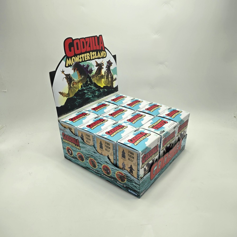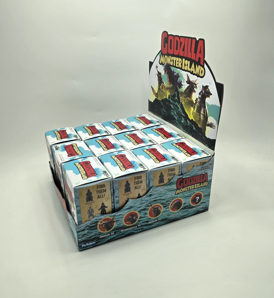 The product is a case of 12 Super 7 Godzilla ReAction Monster Island Blind Boxes, all sealed. Each box contains a different collectible figure based on the theme of Godzilla. The recommended age range for this toy is 8 & up, making it suitable for a wide range of young collectors. Made in China, this product appeals to fans of the iconic monster and allows for a fun and exciting unboxing experience.