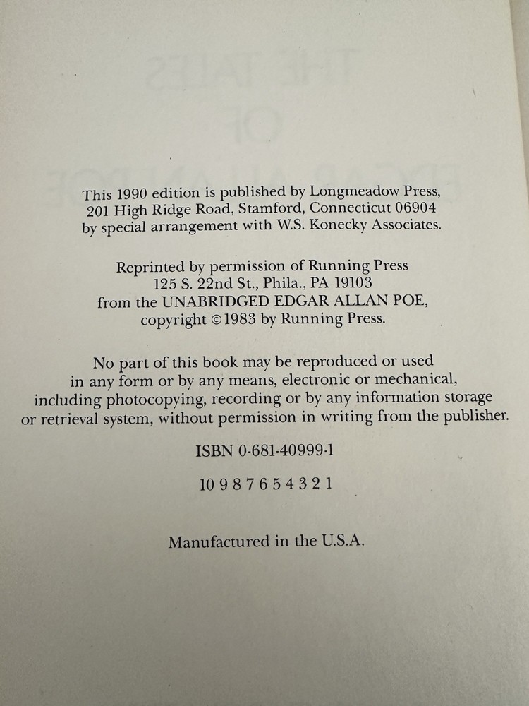 Delve into the chilling world of Edgar Allan Poe with the "Tales of Edgar Allan Poe" from the Leatherbound Classics Series. This hardcover collection brings together the author's most renowned stories, poetically packaged in a volume that exudes both literary and ornamental value. Published in 1990 by Borders Press, this edition boasts 850 pages of Poe's gripping fiction, bound in high-quality leather with gilt detailing for a classic look and feel. The book measures 9.75 inches in height, 6.5 inches in length, and 2 inches in width, making it a substantial yet comfortable size for reading at home or while traveling. With its ISBN 0681409991, this piece is a must-have for collectors and enthusiasts of Poe's dark romanticism and unique storytelling. The durable construction ensures this volume will be a treasured part of any literary library.