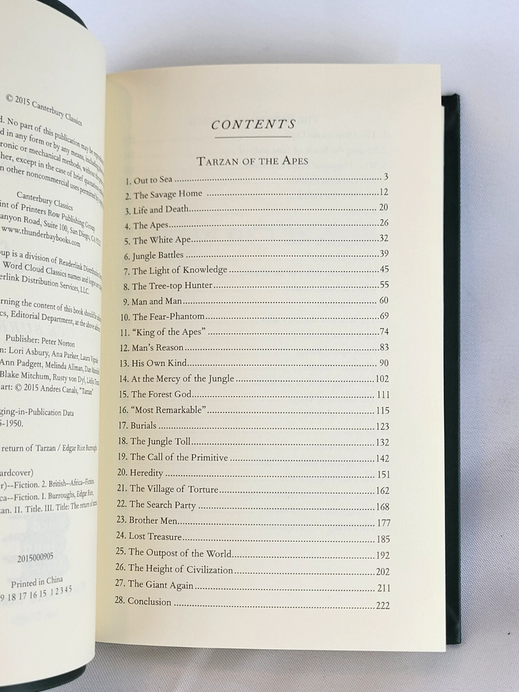 Publisher: Canterbury Classics Pages: 454 Size: 8.00" x 5.50" x 1.50" Weight: 1.0 lb John Clayton, Viscount Greystoke, is marooned on the west coast of Africa as an infant, and is adopted by a tribe of apes. A feral child, he matures into Tarzan, Lord of the Jungle, with the ability to climb, jump, and swing from vines, while maintaining flawless ethics and judgment whenever he is thrust back into the bonds of society. Edgar Rice Burrough’s stories of this preternatural hero inspires readers to examine their own morality and their relationship with the great outdoors.