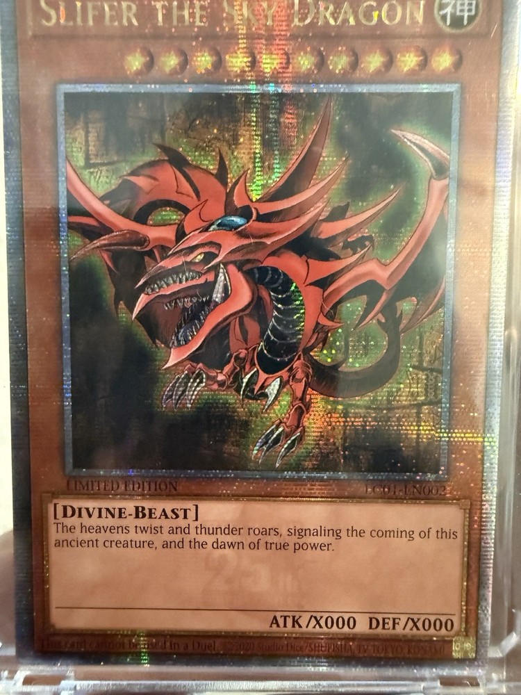 See Photos , As those are the actually photos of the item you will be receiving in mail . A mint Condition Sliver. No scratches or tears. If any questions please let me know and I will gladly answer. Thank you for your time . The TCG Slifer the Sky Dragon Quarter Century Secret Rare Card is a highly sought-after collectible from the Yu-Gi-Oh! TCG, celebrating its 25th anniversary. This limited edition card features the legendary creature Slifer The Sky Dragon, known for its divine attributes and powerful effects. Manufactured by Konami, this holo card is in near mint condition or better, making it a valuable addition to any collector's deck. With its rarity and vintage appeal, this card is a must-have for fans of the game looking to commemorate this special milestone.