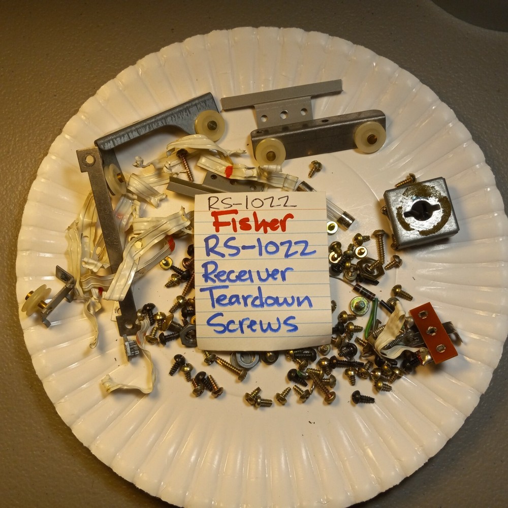 EBAY AUCTION r u s t y n a i l a u d i o The Worlds Marketplace for Vintage Audio Parts M A K E A N O F F E R ! ! ! AUCTION ITEM: πTEARDOWN SCREWS π₯ FISHER RS-1022 π₯ STEREO RECEIVER SCREWS FROM TEARDOWN...YOU ARE BUYING THE SCREWS/HARDWARE AS PICTURED... #PLEASE READ: MY EBAY STORE IS SIMPLY A SOURCE FOR YOU TO FIND VINTAGE AUDIO PARTS... I'M JUST AN AVERAGE GUY TRYING TO MAKE A DIFFERENCE IN A VINTAGE AUDIO PARTS WORLD... WE SEARCH THE WORLD TO FIND THE PARTS WE HAVE... OUR PRICES REFLECT THE COST TO PROVIDE THESE PARTS.... CHECK OUR FEEDBACK, WE ACCEPT MOST BEST OFFERS... WE SELL ALL OUR PARTS "AS-IS" & "UNTESTED" (UNLESS NOTED IN ITEM DESCRIPTION)... r u s t y n a i l a u d i o The Worlds Marketplace for Vintage Audio Parts ITEMS ARE IN GOOD CONDITION...KNOBS WILL SHOW SIGNS OF USE/WEAR...REFER TO SERVICE MANUAL FOR YOUR UNIT TO VERIFY EXACT POSITION FUNCTION...