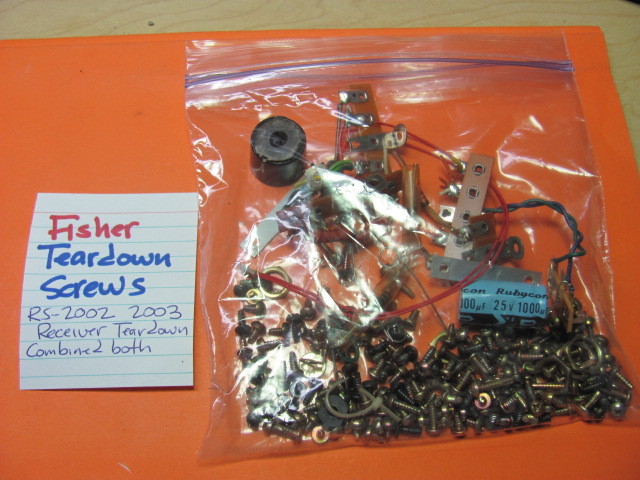 $$$ EBAY AUCTION r u s t y n a i l a u d i o The Worlds Marketplace for Vintage Audio Parts AUCTION ITEM: FISHER RS-2003 RS-2002 STEREO RECEIVER TEARDOWN SCREWS LARGE BAG TORE DOWN RS-2002 & RS-2003 COMBINED ALL SCREWS AND MISC PARTS THESE ARE GETTING HARD TO FIND PLEASE READ: MY EBAY STORE IS SIMPLY A SOURCE FOR YOU TO FIND VINTAGE AUDIO PARTS... I'M JUST AN AVERAGE GUY TRYING TO MAKE A DIFFERENCE IN A VINTAGE AUDIO PARTS WORLD... WE SEARCH THE WORLD TO FIND THE PARTS WE HAVE... OUR PRICES REFLECT THE COST TO PROVIDE THESE PARTS.... CHECK OUR FEEDBACK, WE ACCEPT MOST BEST OFFERS... WE SELL ALL OUR PARTS "AS-IS" & "UNTESTED" (UNLESS NOTED IN ITEM DESCRIPTION)... WE WORK ON THE HONOR SYSTEM...