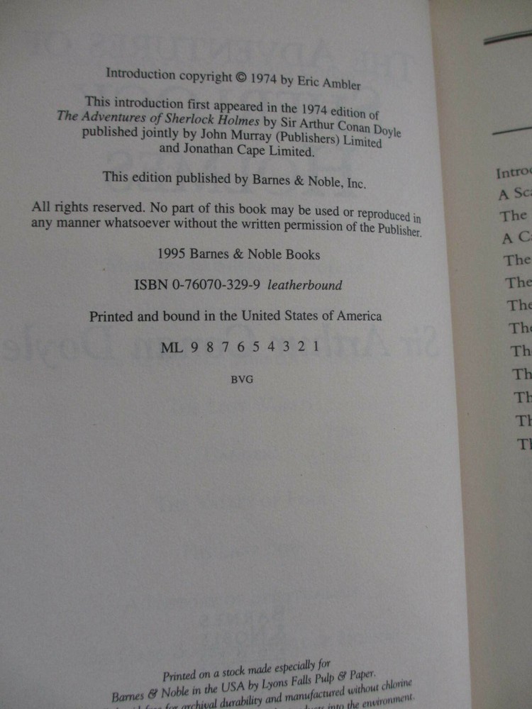 THE ADVENTURES SHERLOCK HOLMES ARTHUR CONAN DOYLE LEATHER 1995 Barnes Noble *