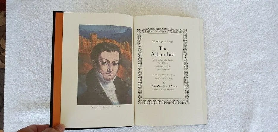 THE ALHAMBRA BY WASHINGTON IRVING EASTON PRESS 1ST EDITION - 1ST PRINTING COLLECTORS EDITION. This book is full leather bound with hubbed spines and accented in 22kt. gold. The front and back insides are covered with moiré fabric and includes silk ribbon page marker. Great book for your collection. Please ask all questions and request for additional photos before purchase. You are purchasing the item shown in photos. (Photos are part of the description) Item is sold in as-is condition. Sorry No Refunds or No Returns. Only ship to the lower 48 US states. Shipping days are Monday, Wednesday and Friday. Shipped USPS. Thanks for Looking