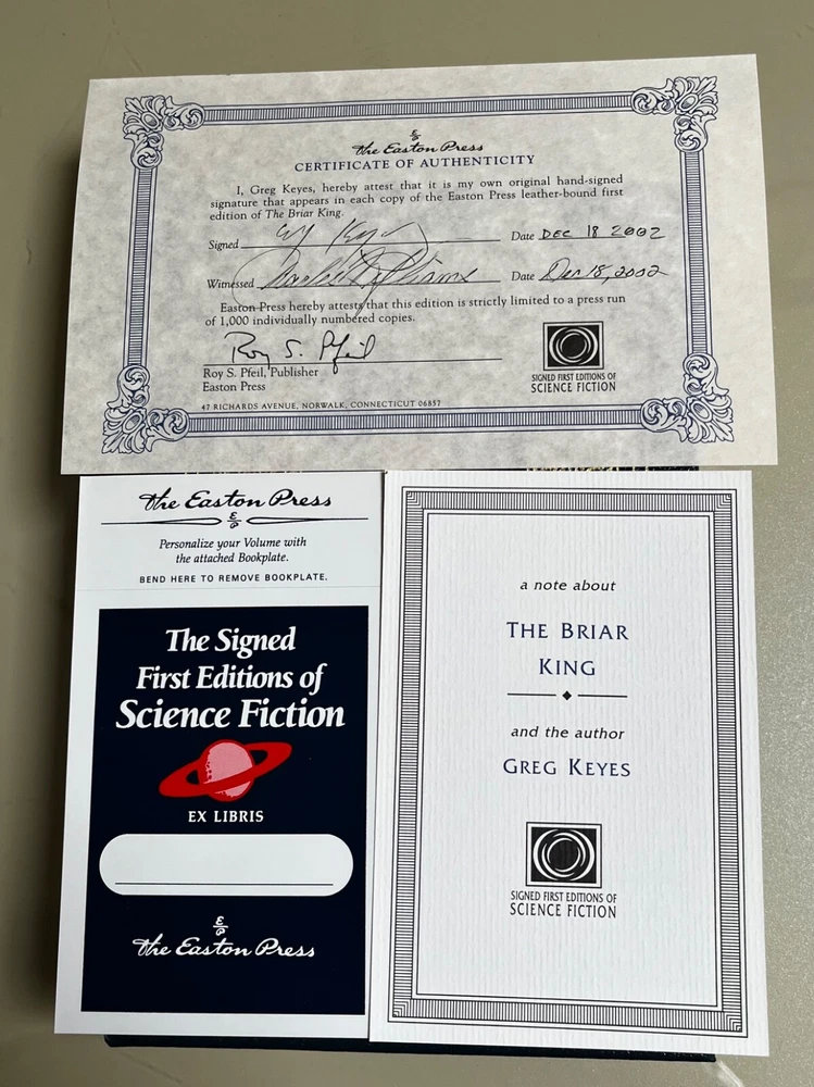 Easton Press books are excellent, very high quality, made using many old-fashioned techniques by which books used to be made hundreds of years ago. Easton Press books are made with the finest quality materials. They are bound with genuine leather, with titles and artwork in gold, they make gilded edges, they use acid-free archival quality paper that will last dozens of years and will still look new. They are sewn, not glued. They provide high quality text, easy to read font, good wide margins, beautiful illustrations, sometimes specially ordered for each edition, sewn-in silk page dividers. Each book is like a work or art and is a pleasure to hold in your hands. Holding this book, looking at it, touching it, opening the pages is an experience only a true book lover will appreciate. This book is the part of the Collectors 1st Edition of science fiction series, books written by recognized masters of the genre. There is a limited number of books published, usually 1000 to 1200. This book was never used, it was just removed from the shrink wrap and places on the shelf with other Easton Press books. It's really a new book, but I listed it as "Like New" because shrink wrap is missing. Comes with Collector's Notes and Exlibris. Please look at the pictures and feel free to ask questions.