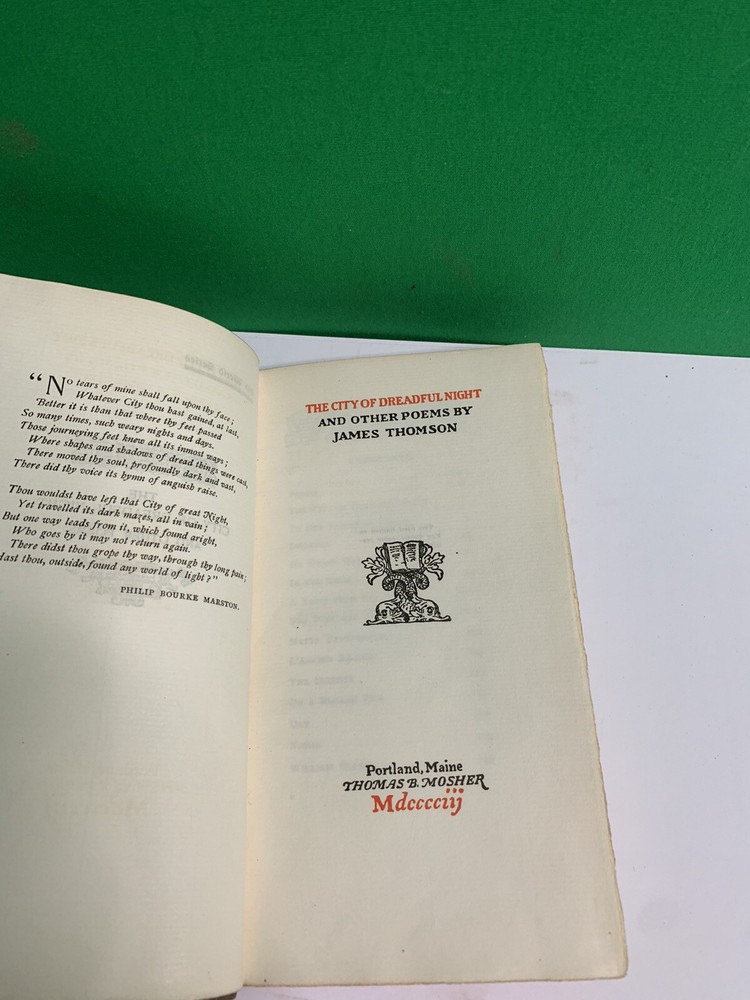 THE CITY OF DREADFUL NIGHT by James Thomson Old World Series This First edition on Van Gelder paper consists of 925 copies!!!! Limited edition Condition is antique very good The Item Pictured Is The Item You Will Receive. Please Look At The Photos To Ensure Condition And Decide For Yourself. We combine shipping to save you money Thanks for looking!!! We have a large collection of magazines, books, newspaper, postcard, photos, booklets, and much more! Please ask about discounts on purchases. We have many more items that are not posted yet!