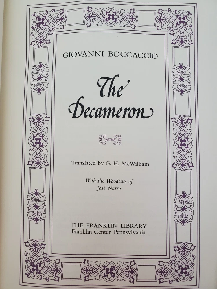 THE DECAMERON by Giovanni Boccaccio Leather Bound Book Franklin Library 1981. Some wear from age but still in good condition. Please see all photos.