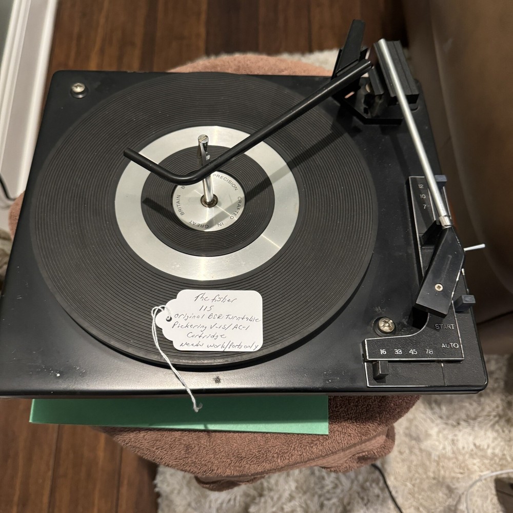 THE FISHER 115 ORIGINAL BSR TURNTABLE. GOOD PICKERING V-15/AC-1 CARTRIDGE AND NEEDLE. WITH 33 AUTOMATIC SPINDEL. THIS TURNTABLE NEEDS SOME WORK, BUT IT'S ALL COMPLETE, MAINLY FROZEN. (WE HAVE BEEN IN BUSINESS FOR OVER 60 YEARS REPAIRING VINTAGE AUDIO EQUIPMENT.) IF YOU HAVE ANY CONCERNS, PLEASE CONTACT US PRIOR TO YOUR PURCHASE.