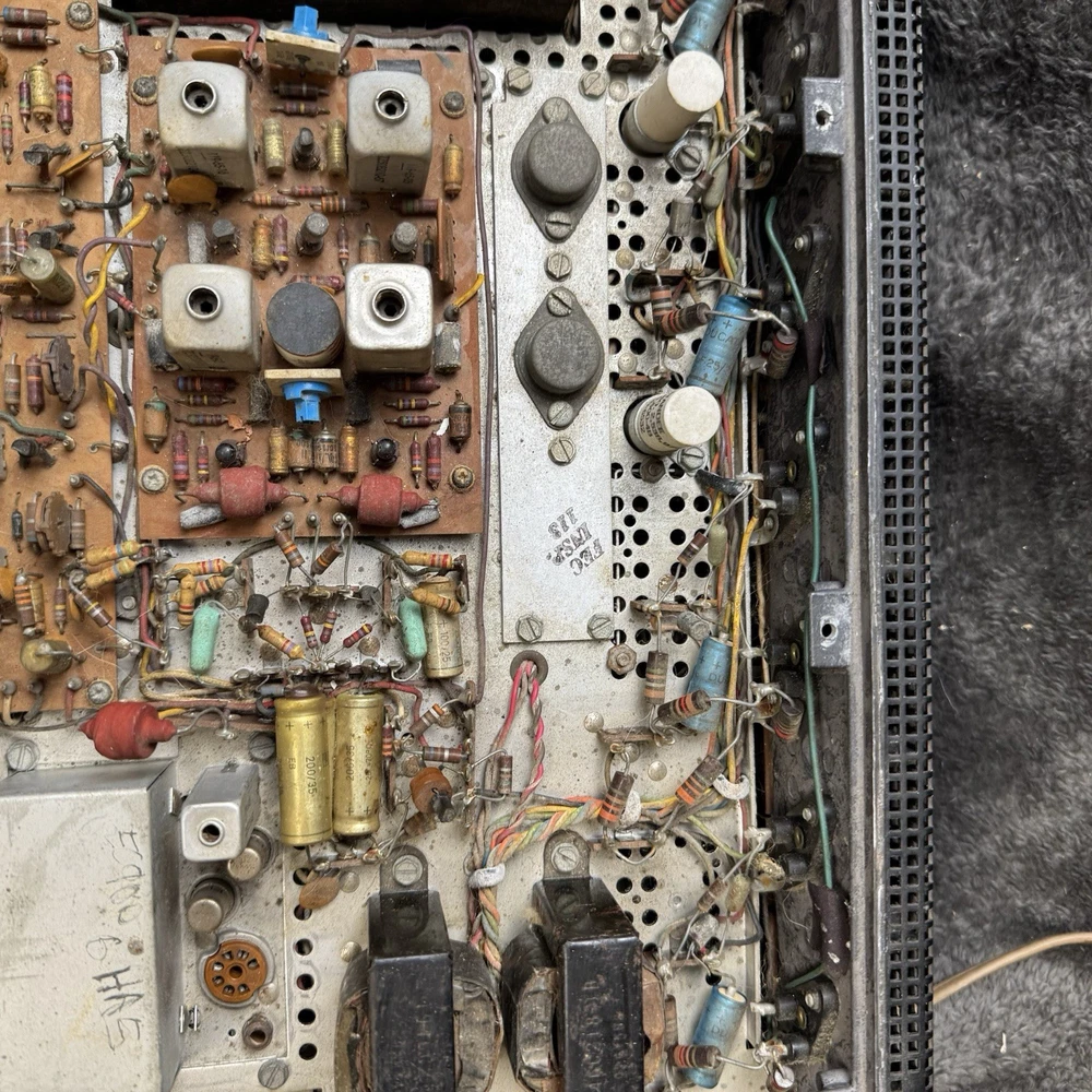 I purchased a large estate collection from an avid fisher collector this is a unit that the person was working on. I assume it does not work due to the condition of it. For parts with no refunds or returns The Fisher 600-T AM/FM Stereo Receiver is a vintage audio device made in the United States. As a unit quantity of 1, it is ideal for repair parts or restoration projects for those who appreciate and enjoy vintage audio equipment. With the Fisher brand known for its quality and reputation in the industry, this stereo receiver holds value for collectors and enthusiasts looking to maintain or restore classic audio systems.