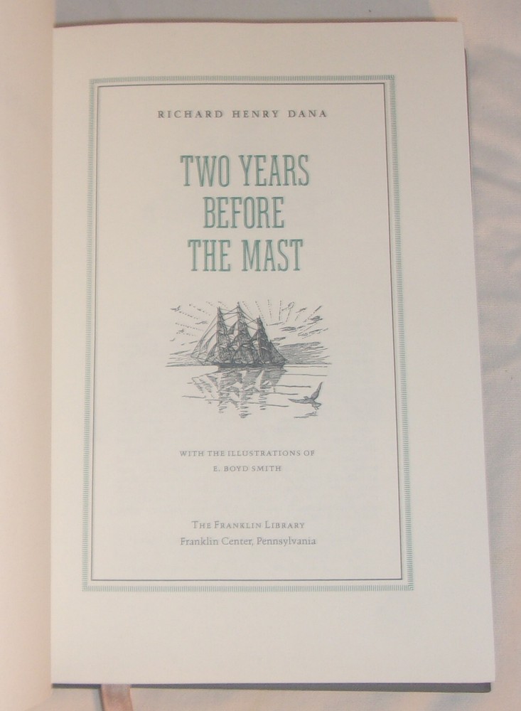 Franklin Library "Two Years Before the Mast" by Richard Henry Dana, in very good condition.This is a 1983 printing and has a green quarter bound leather cover.The pages look nice inside.A good vintage book to read. Items are sold as is, so please read the item description for the condition of the item.Payment is expected within 3 days of auction end. Please allow USPS shipping rules for item to reach you.Usually within 7-10 days for parcel post or quicker for priority mail.Items are sold as is, please read the item description. Please e-mail me with any questions.Thank you. On Jul-25-14 at 14:26:07 PDT, seller added the following information: Track Page Views With Auctiva's FREE Counter
