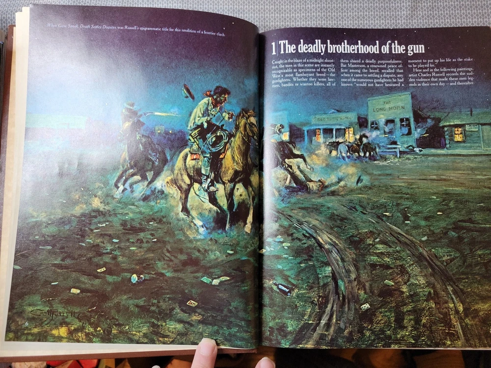 This leather-bound book titled "THE GUNFIGHTERS THE OLD WEST SERIES" is a must-have for any collector or enthusiast interested in the old west. Published in 1974 by Time-Life, the book contains detailed information about the gunfighters of the era. Its features include a leather-bound cover and it is written in English. The book is categorized under "Books & Magazines" and "Books". The author's name is not mentioned, but it is credited to Time-Life. This book is in acceptable condition and would make an excellent addition to any collection.