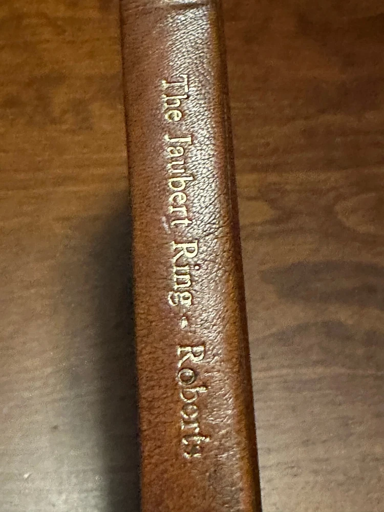 THE JAUBERT RING by: Willo Davis Roberts VERY GOOD CONDITION - HARDCOVER (GENUINE LEATHER BOUND) - 1ST EDITION Item Pictured is the One You WILL Receive! No Markings or folds on pages About the Book: Title: The Jaubert Ring Author: Willo Davis Roberts Publisher: Doubleday Special At tributes : First Edition - Leather Bound Format: Hardcover - No Dust Jacket - Genuine Leather Bound Copyright: 1976 Pages: 188 ISBN: 0-385-11591-1 Dimensions: 5.75 x 8.50 x 0.75 inches