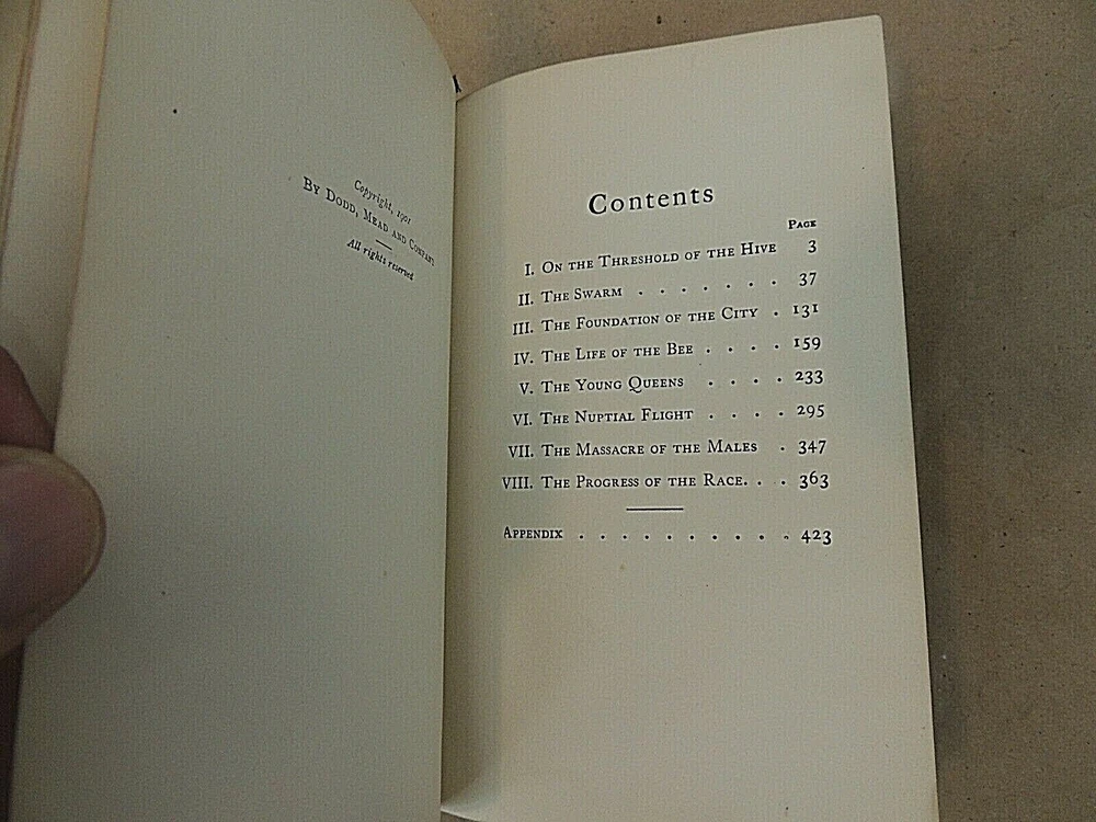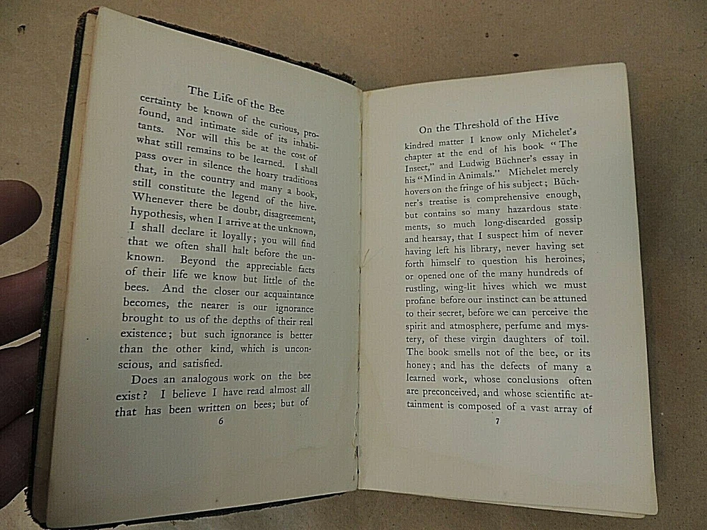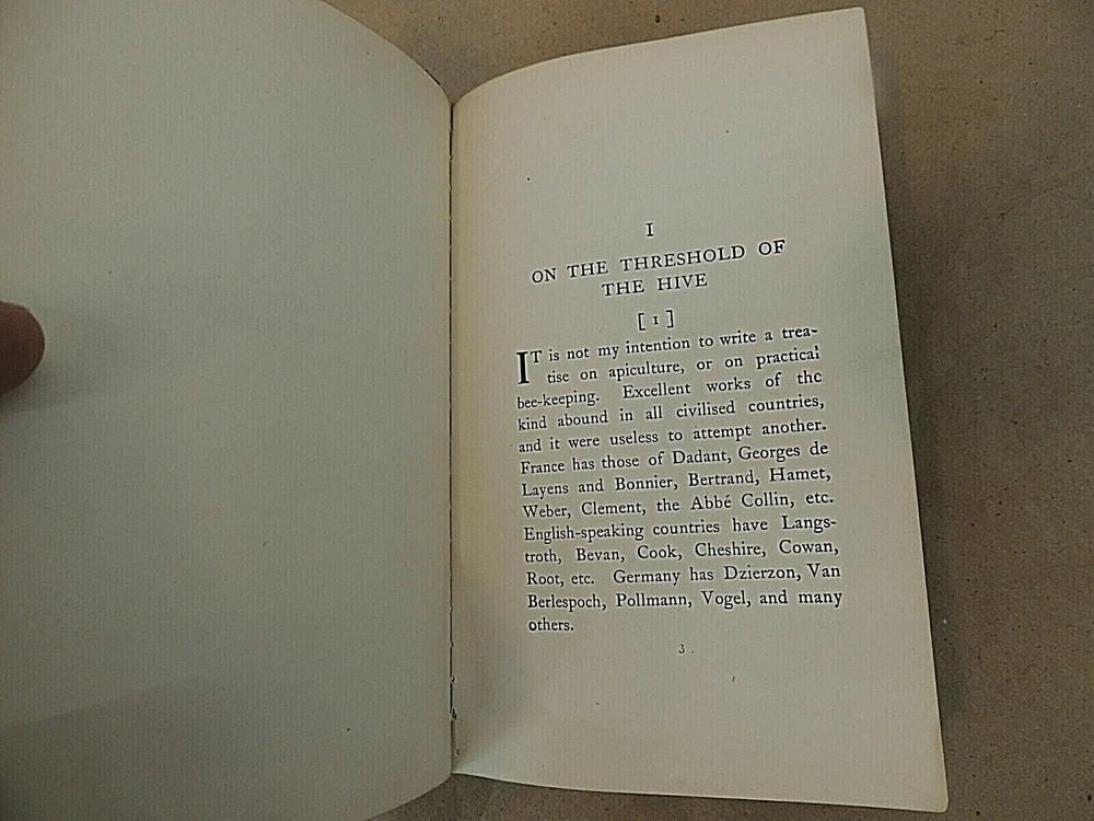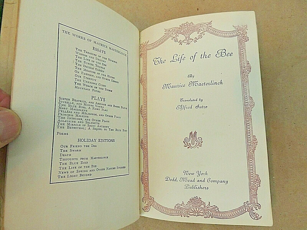 The Life Of The Bee, by Maurice Maeterlinch, translated by Alfred Sutro. Copyright 1901. Published by Dodd, Mead and Company, New York. Leather bound, condition is good considering age, cover shows wear, somewhat loose, visible in photos. Pages are yellowed, no folded, torn or missing pages. Payment is due within 3 days of auction end. Shipment will be made within 1 business day of confirmed payment, usually by USPS or FEDEX. Shipping for this item will be calculated based on winning bidder‘s location. Packaging is done very carefully using generous amounts of packing peanuts and bubble wrap. Returns are accepted within 30 days, seller pays return shipping fees. In the event you have any issues with your purchase, please contact us immediately before opening a case with eBay. We welcome the opportunity to rectify any inadvertent errors or misunderstandings. International bidders, please inquire about shipping costs to your location before bidding. Because of recent difficulties with deliveries in several countries we only use USPS Priority International for international shipping.