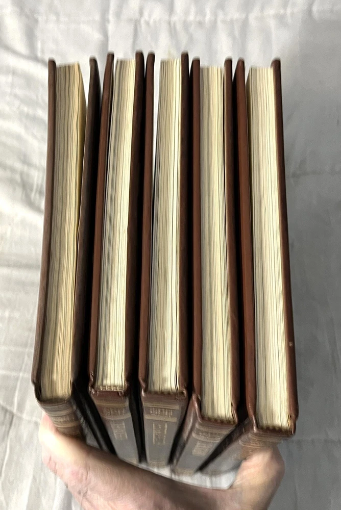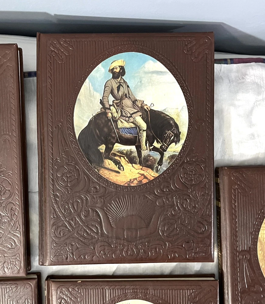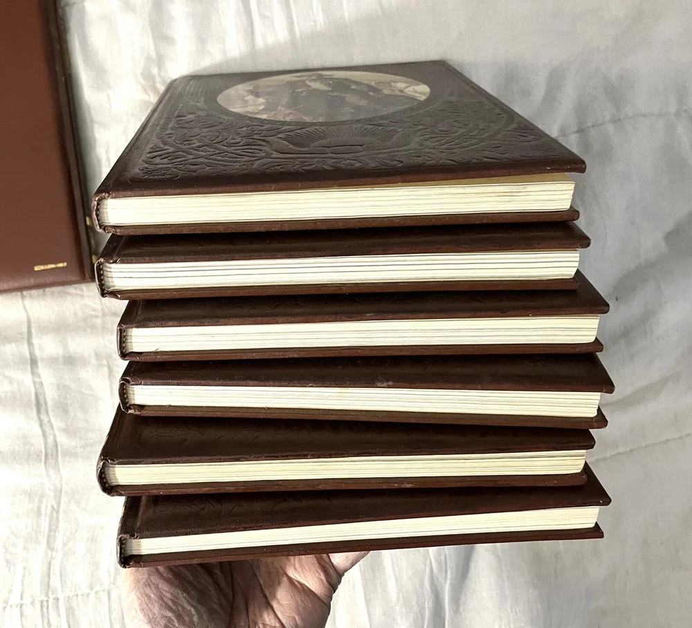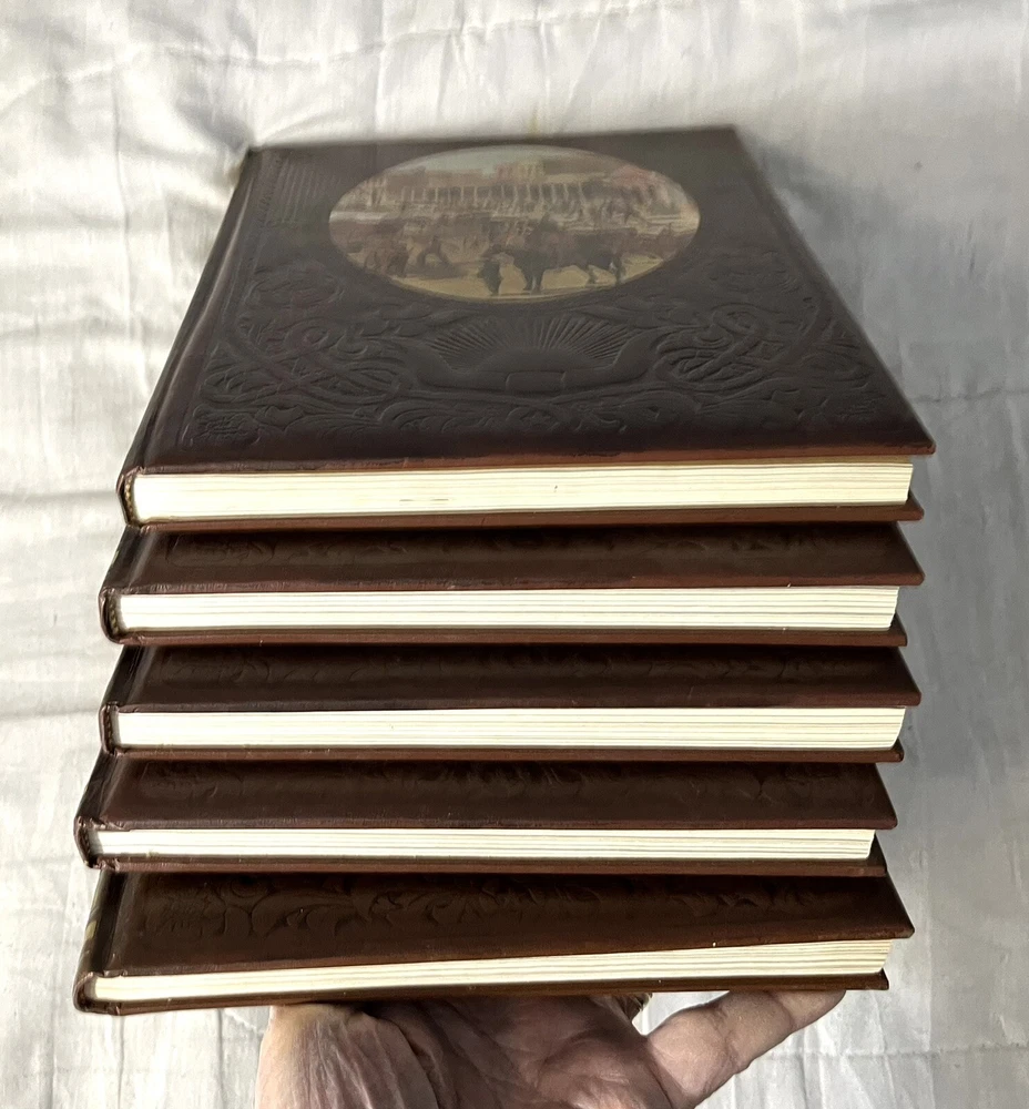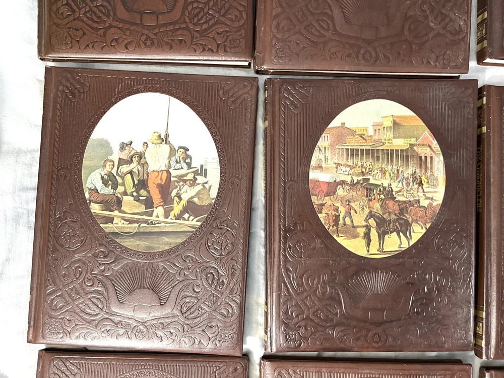11 Very good condition hardcover books. About 11” tall. Early 1970s publications. Exterior: Leatherette bindings are clean, square, and tight. No wear of the corners. Interior: Two of the books (The Gunfighters and The Great Chiefs) have owner name handwritten in large ink script on the front free endpapers…see photos. Pages are clean with no tears, creasing, or other handwriting. Titles follow: The Gunfighters The Great Chiefs The Ranchers The Rivermen The Women The Indians The Spanish West The Chroniclers The Townsmen The Trailblazers The Forty-Niners