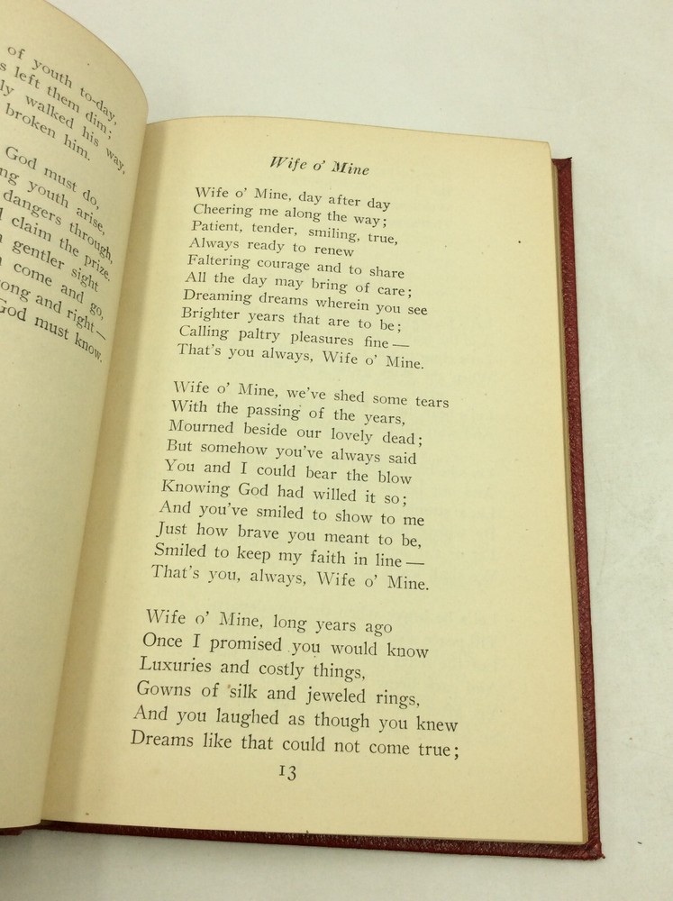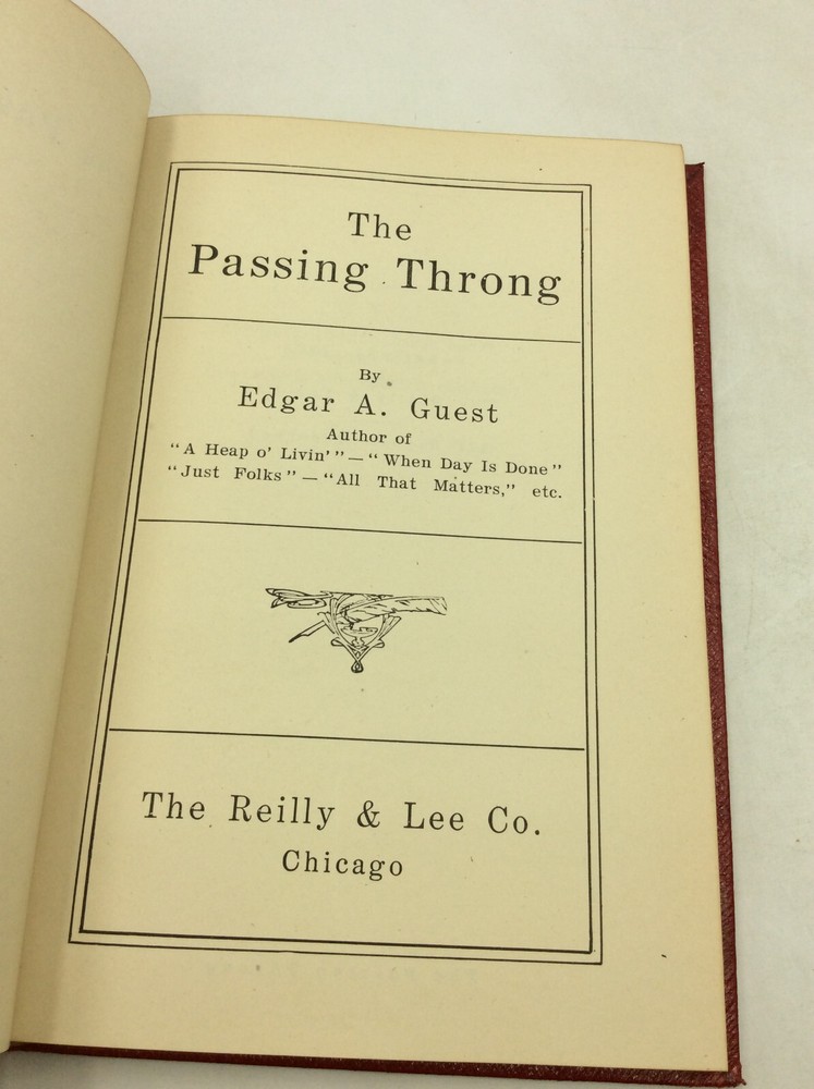 THE PASSING THRONG by Edgar A. Guest Chicago: The Reilly & Lee Co., 1923. Leather. 190p. A small, flexible hardcover book bound in full red leather with marbled endpapers. Fine condition; clean and tight. Item #185035 Measures approx. 6.75" x 4.5"