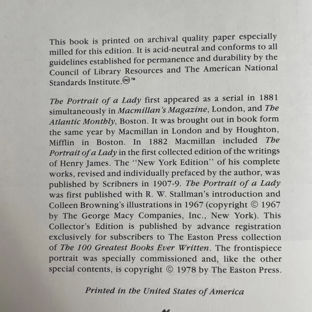 THE PORTRAIT OF A LADY (Easton Press) By Henry James, Leather Bound 1978. Shipped with USPS Media Mail....