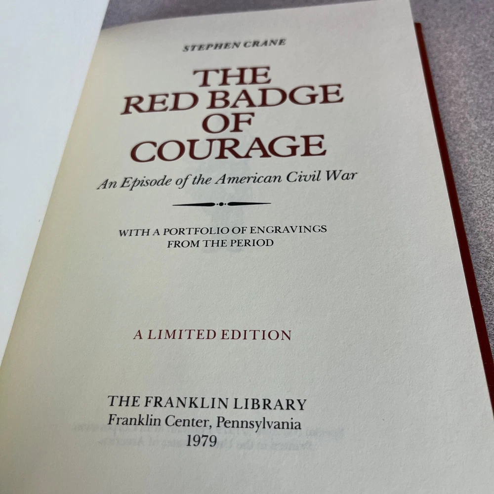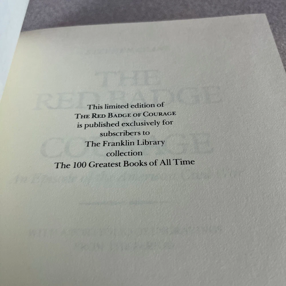 THE RED BADGE OF COURAGE Stephen Crane 1979 Ltd. Ed. Franklin Lib. 100 Greatest Full Leather Hardcover Very Good: Tight Binding, Clean pages, no markings, minimal wear only. Please check pictures. Franklin Library 100 Greatest Books of All Time The leather bound 100 Greatest Books of All Time as published by the Franklin Library were bound in full genuine leather with silk moiré end papers. Ships Media Mail to save you $$$. This means it could take between 5-9 days to be delivered, (In rare occasions 7-14 days). If you need your book faster, please consider upgrading to Priority Mail. We add books weekly, check out our store for more related works. Please contact us if you have any questions or issues. Thank you.