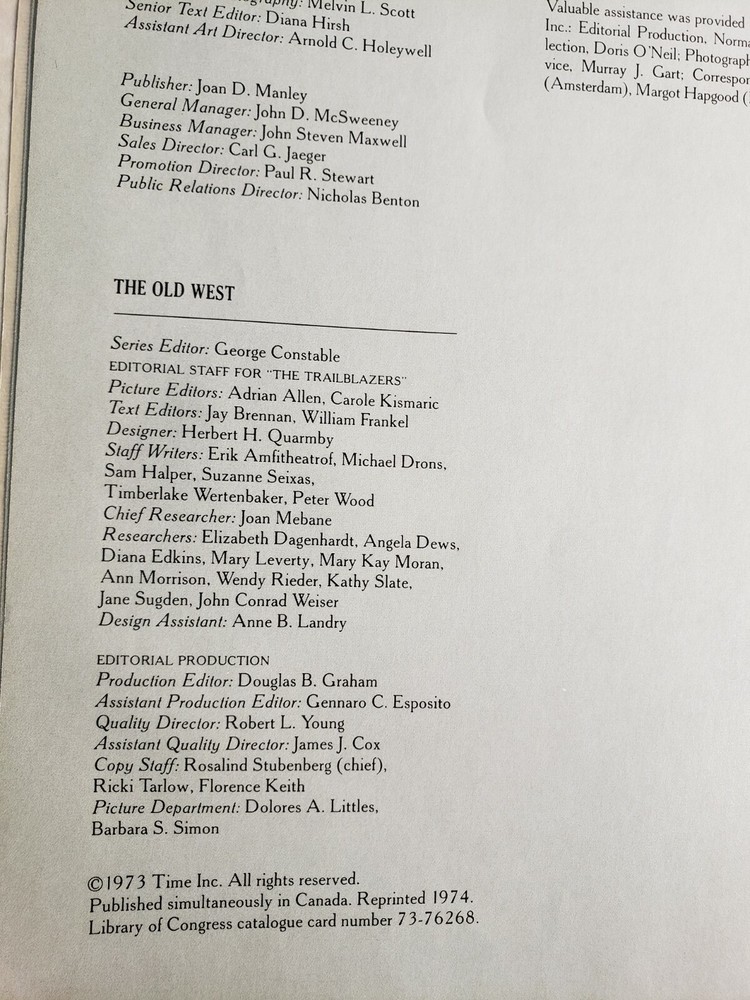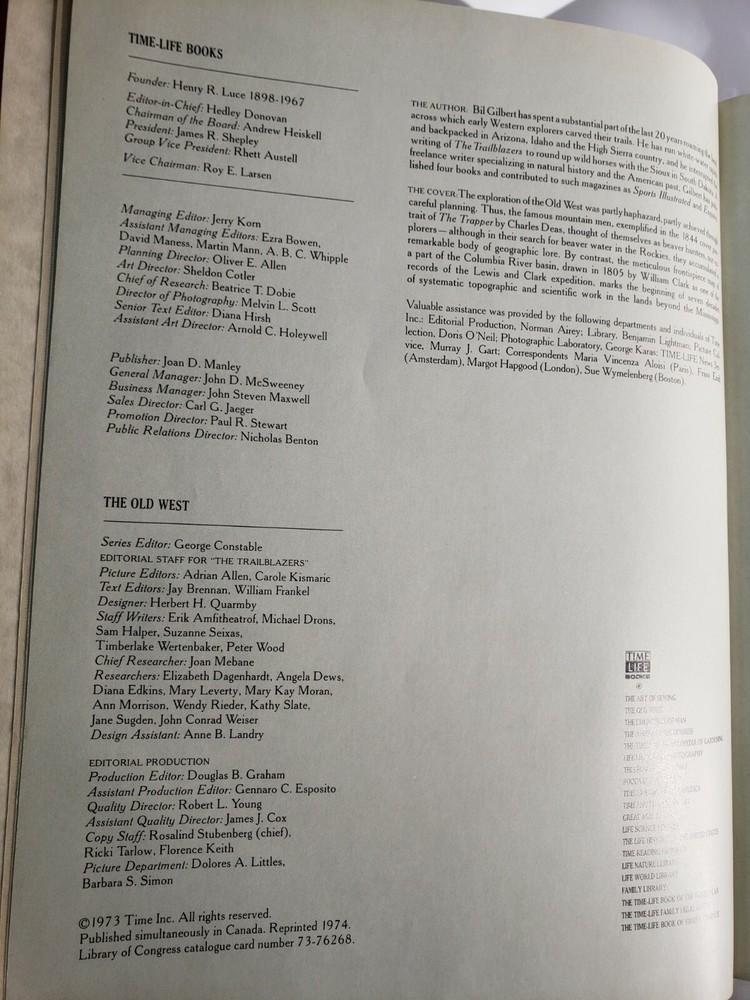THE TRAILBLAZERS - The Old West Series Time Life 1974 HC Book Bil Gilbert.