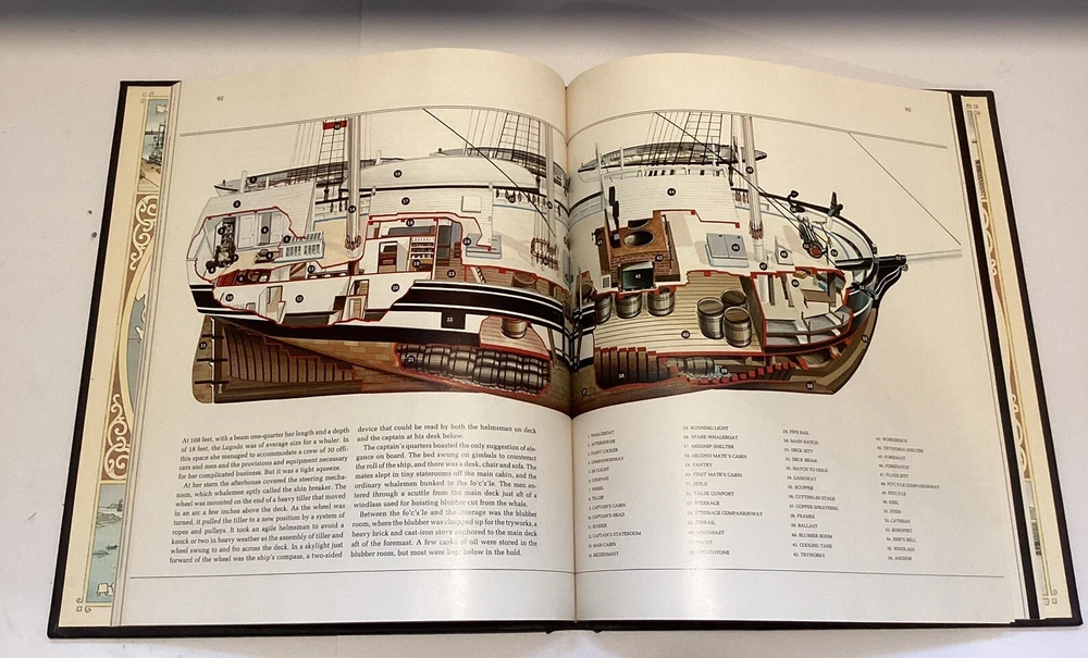This vintage hardcover book from the Time Life Books' The Seafarers series is titled THE WHALERS and written by A.B.C. Whipple. It features amazing images and illustrations with a focus on whales and whaling. The limited edition book has 175 pages and is perfect for adults interested in seafaring, whaling and history. The book measures 9.5" in length, 11.5" in height, and 0.75" in width. It has a leather-bound cover and is written in English. The book is an amazing addition to any library especially for those interested in maritime history.