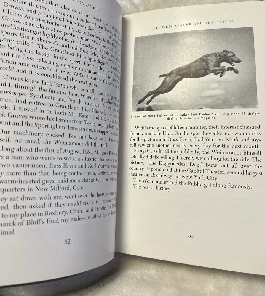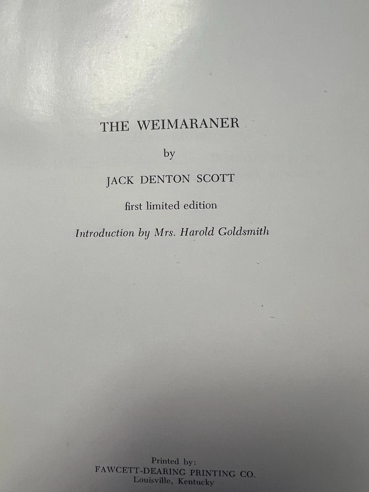 This rare and collectible book, "THE WEIMARNAER" by JACK DENTON SCOTT, is a must-have for dog lovers and antique book collectors alike. The leather-bound paperback edition was published in 1953 by a private publisher and is a limited edition copy. The book is beautifully illustrated and includes special attributes such as a collector's edition and limited edition. The topic of the book is WEIMARNER, and it is written in English. This original copy was manufactured in the United States and is in excellent condition.