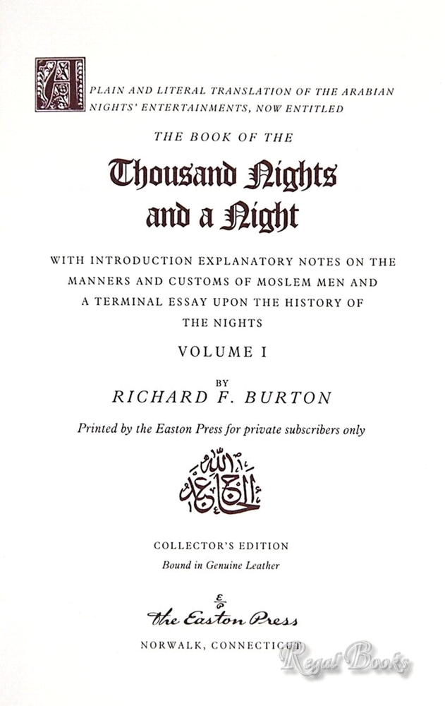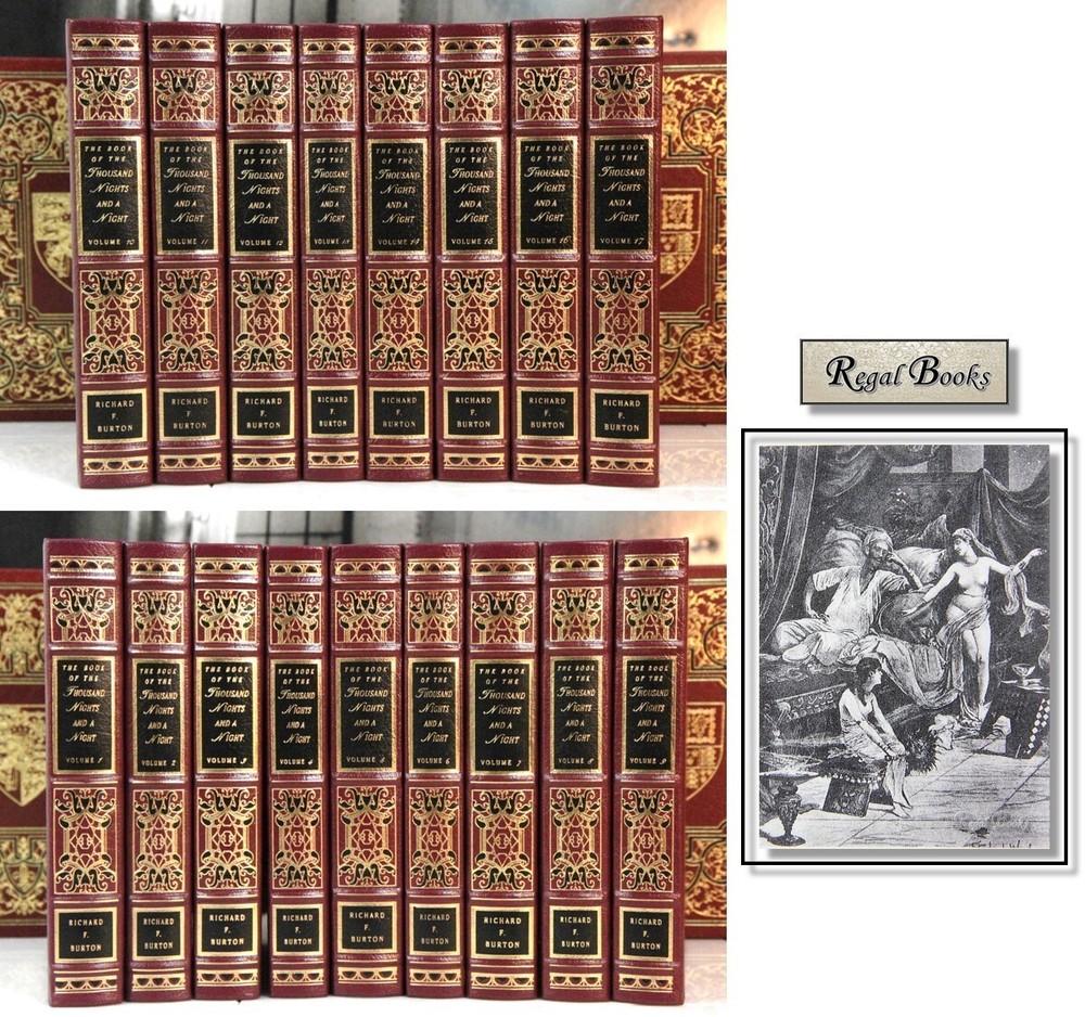 ***Copy of photos, personal formats, graphics, or text is prohibited . Ebay may drop listings with infractions. I review content regularly. Arabian Nights Series A Thousand Nights and a Night Author: Richard F Burton Illustrations by Description: One of the most ornate sets produced by Easton Press. This was a staple production by Easton for a number of years, so not quite as rare as some, but a cornerstone of Easton Press collections. Richard Burton's work has also been a foundational centerpiece to almost any well appointed leather library of the great houses and wealthy collectors since its first publication. Look in any great library, from the noble palaces to stately country homes, some version of these works will be found. Condition: Leather is bright with only little sign of any shelf wear. Little marr to gilt page end save an infrequent mark. There is one or two longer marks on a couple books. For such a large set, this is a pretty excellent group and one of the better sets you will find on the market open and used. Even some sets sealed in the plastic wont be as nice if they have been stored improperly. This is a large, heavy set and expensive to ship back and forth. Always deal with a seller you can trust because many of these sets are popping up out of poor storage conditions from private sellers trying to raise cash. Regal Books is a tiny shop, but one of the premier sellers of Easton Press on the net. We show you what your getting and we ship professionally packed. This Fine Leather Book Features: Top grade, gold embossed/ornamented leather Gilded page ends to protect against dust and moisture Decorative end papers Acid neutral archival paper to last generations