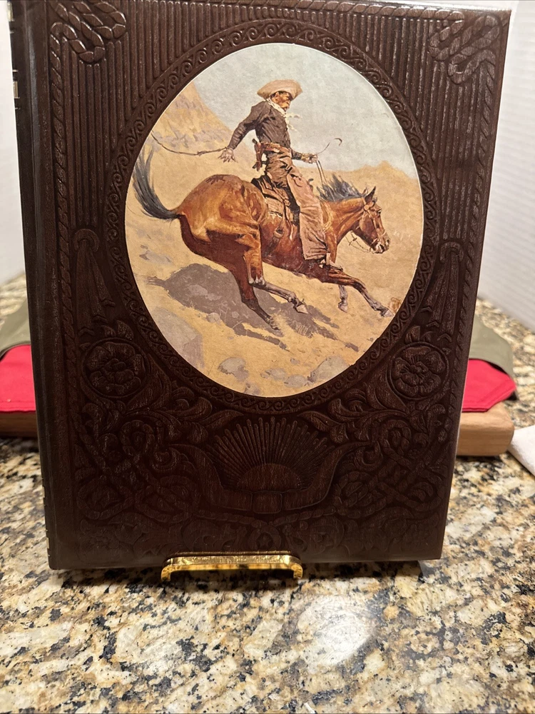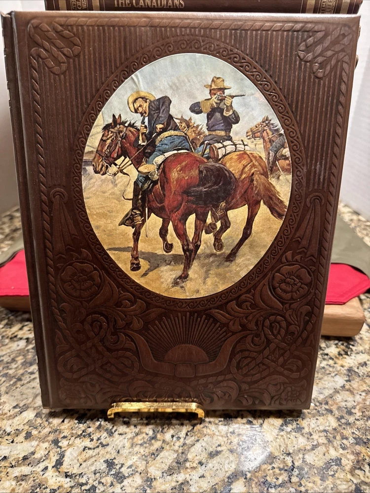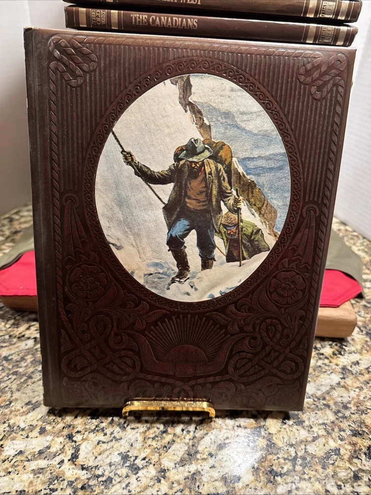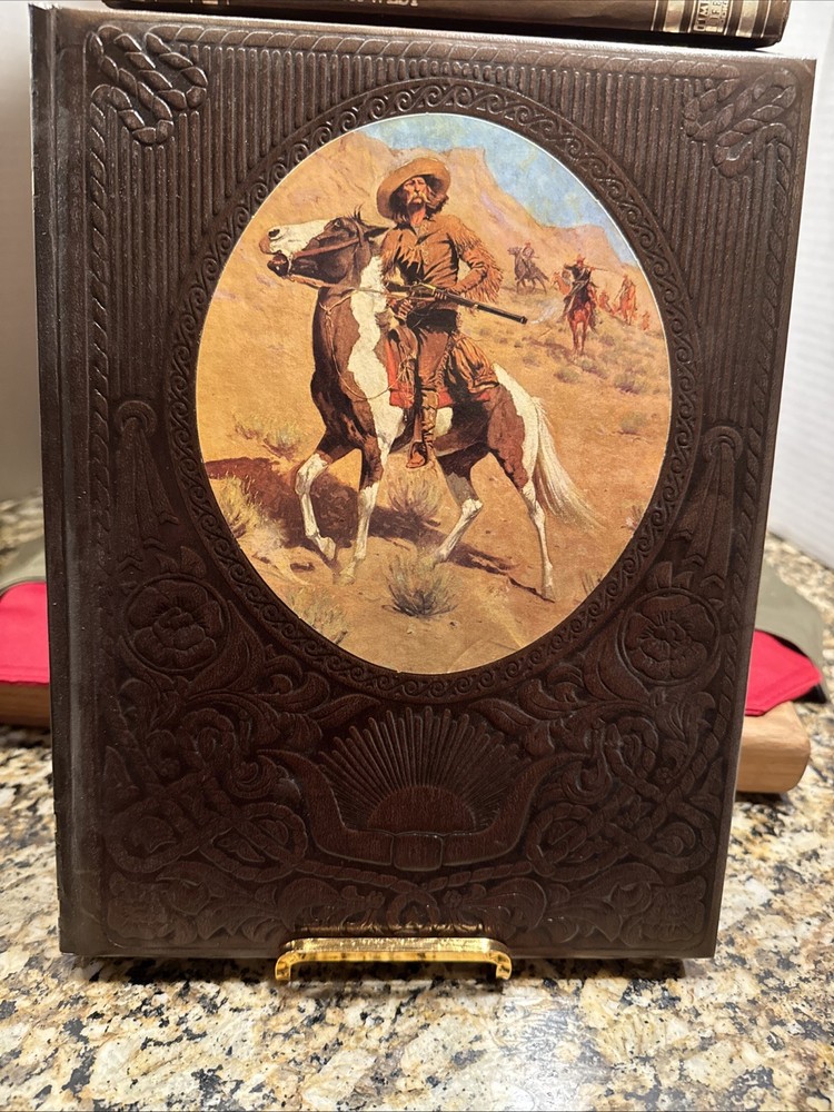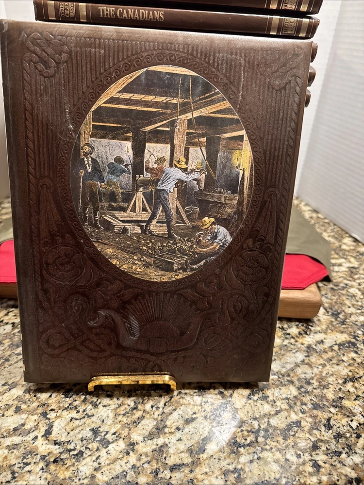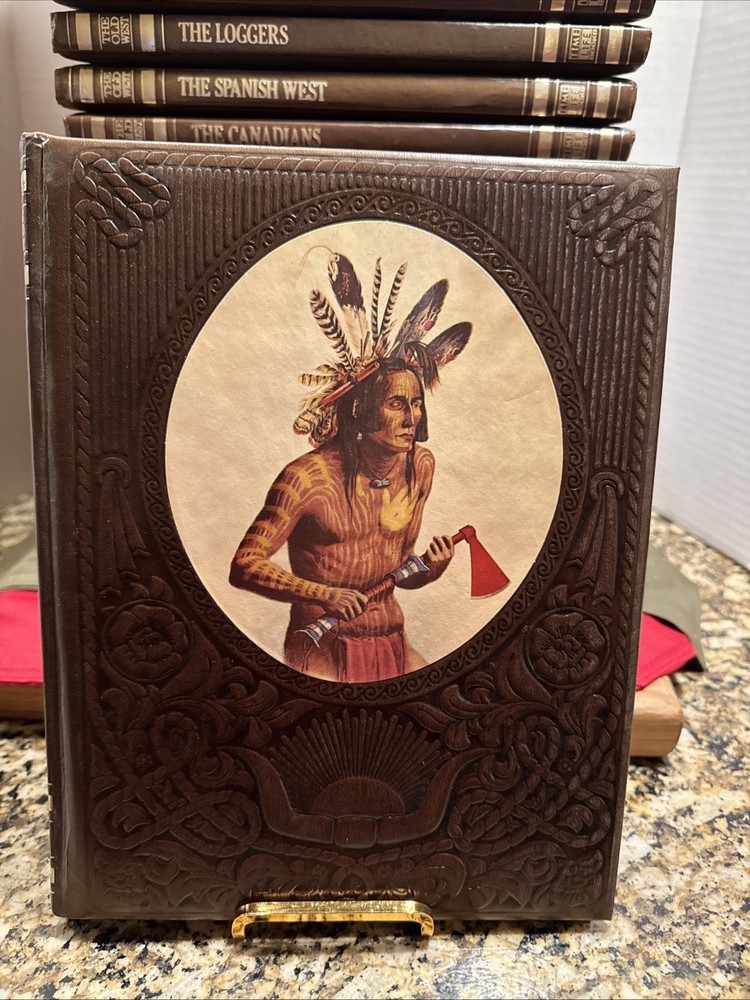 The Time Life Series Set "The Old West" is a vintage collection of 20 leather-bound volumes, each measuring 8.5 x 11 inches, that provide a comprehensive history of the American West in the 18th and 19th centuries. This first edition set, published in 1973, offers a detailed account of the era through nonfiction narratives and illustrations, making it suitable for young adults, ages 9-12, and adults interested in American history and Westerns. The faux leather-bound books are perfect for those looking to delve into the realism literary movement and explore the rich history of the Old West. The Volumes include The Indians, The Chroniclers, The Scouts, The Ranchers, The Alaskans, The Soldiers, The Miners, The Loggers, The Spanish West, The Canadians, The Rivermen, The Great Chief, The Women, The Pioneers, The Cowboys, The Gamblers, The Expressmen, The Texans, The Townsmen, The Gunfighters