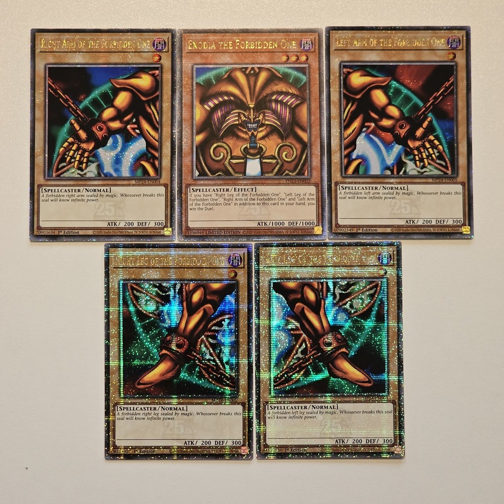 Absolutely thrilled with this TN23 MP24 Exodia set! The Quarter Century Secret Rare cards are stunning—crisp detailing and fantastic holographic effects. The seller is super responsive, and shipping was smooth with no surprise fees. Great packaging and a trustworthy seller—highly recommend checking out their Insta for more deals! Perfect for collectors seeking high-quality cards without the hassle. Will definitely buy again!