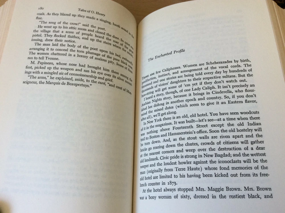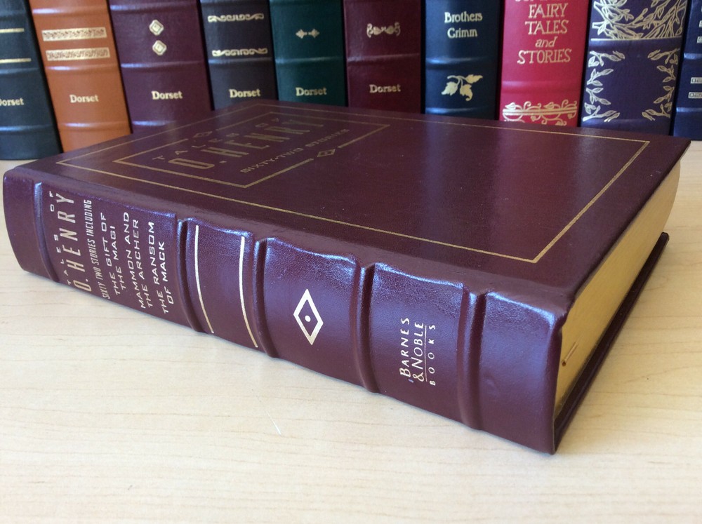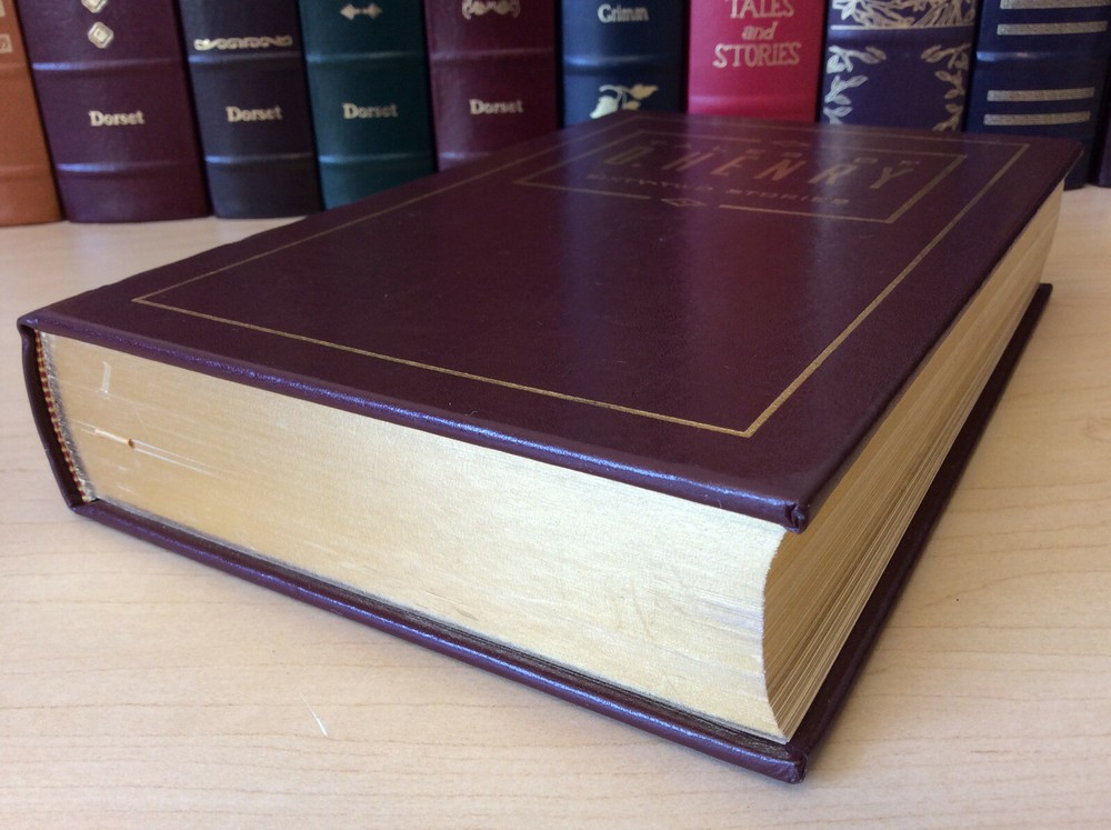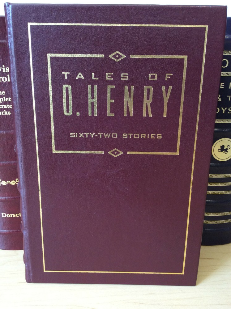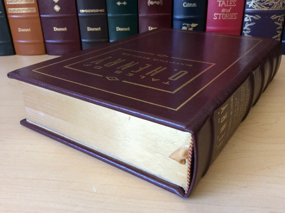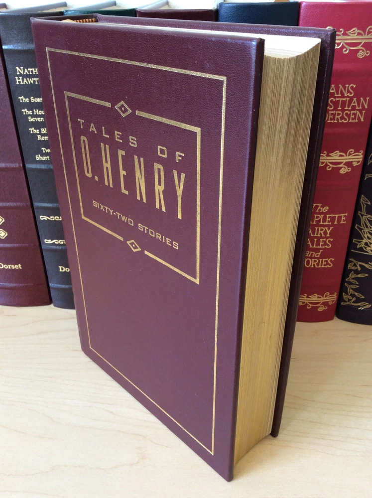 Tales of O.Henry - Sixty-Two Stories bound in leather, with gilt edged pages and a ribbon marker. Item Condition: A hardcover leatherbound in Very Good condition. There are no names, bookplates or stamps from previous owners inside. The binding is tight and the pages are clean, though some appear to have tanning on the inside. The gilt edging is bright and shiny with some marks and dings, and the leather is in great condition with some wear on the corners. Dimensions are approx: 9.25" x 6.25" x 1.5" This book will ship in a box with bubble wrap. Photos are of the actual book that will be shipped.
