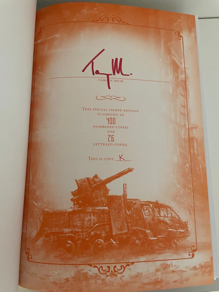 This set is an absolute treasure for any Tamsyn Muir fan! The matching lettered editions are stunning, with gorgeous craftsmanship from Subterranean Press. Each signed book feels special, and the inclusion of future title rights is an amazing bonus. Packaged with care, it arrived in perfect condition—worth every penny for collectors who love The Locked Tomb series and Muir’s brilliant writing. A must-have!
