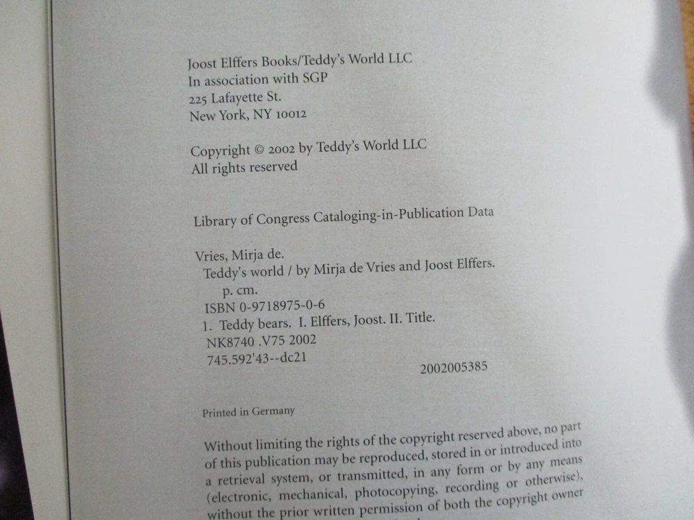 Available is this unpaginated leather hardcover titled "Teddy's World" published in 2002 by Joost Elffers printed in Germany as an Easton Press quality bound book with sewn-in bookmark, moire endpapers, and contains foldouts. Thank you for looking. All items will be packaged carefully for protection from moisture and rough handling.