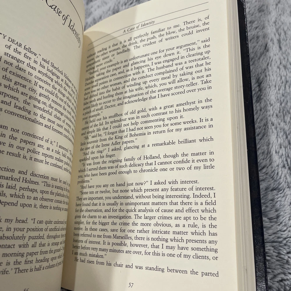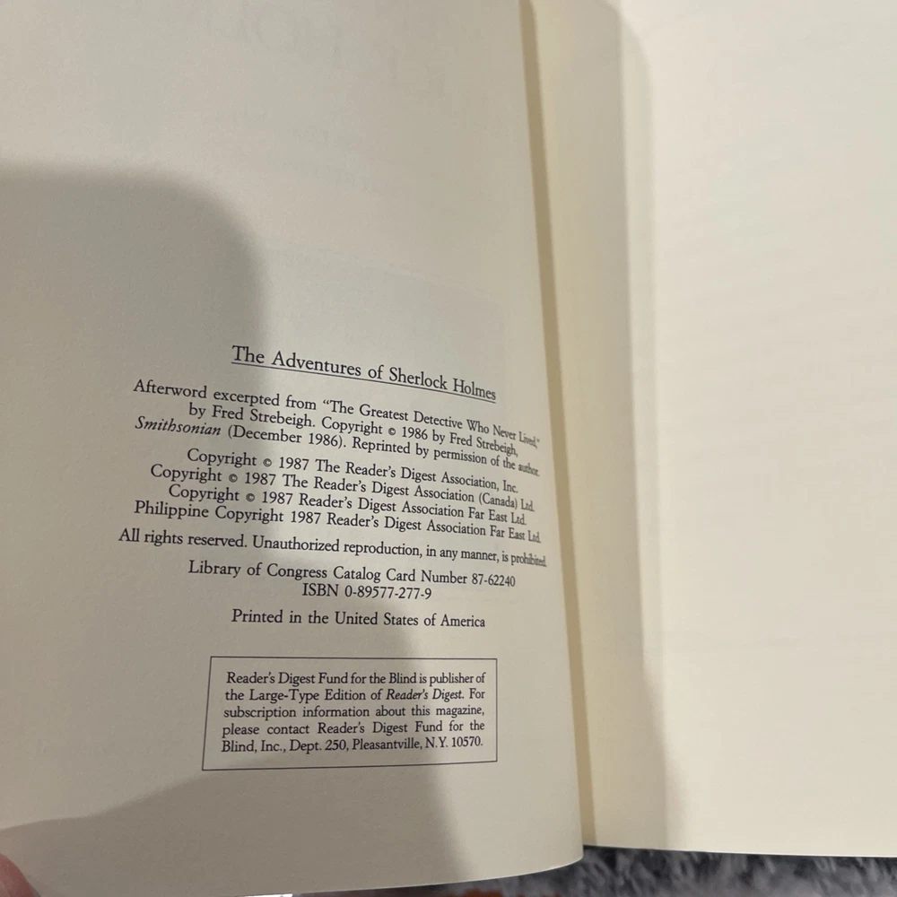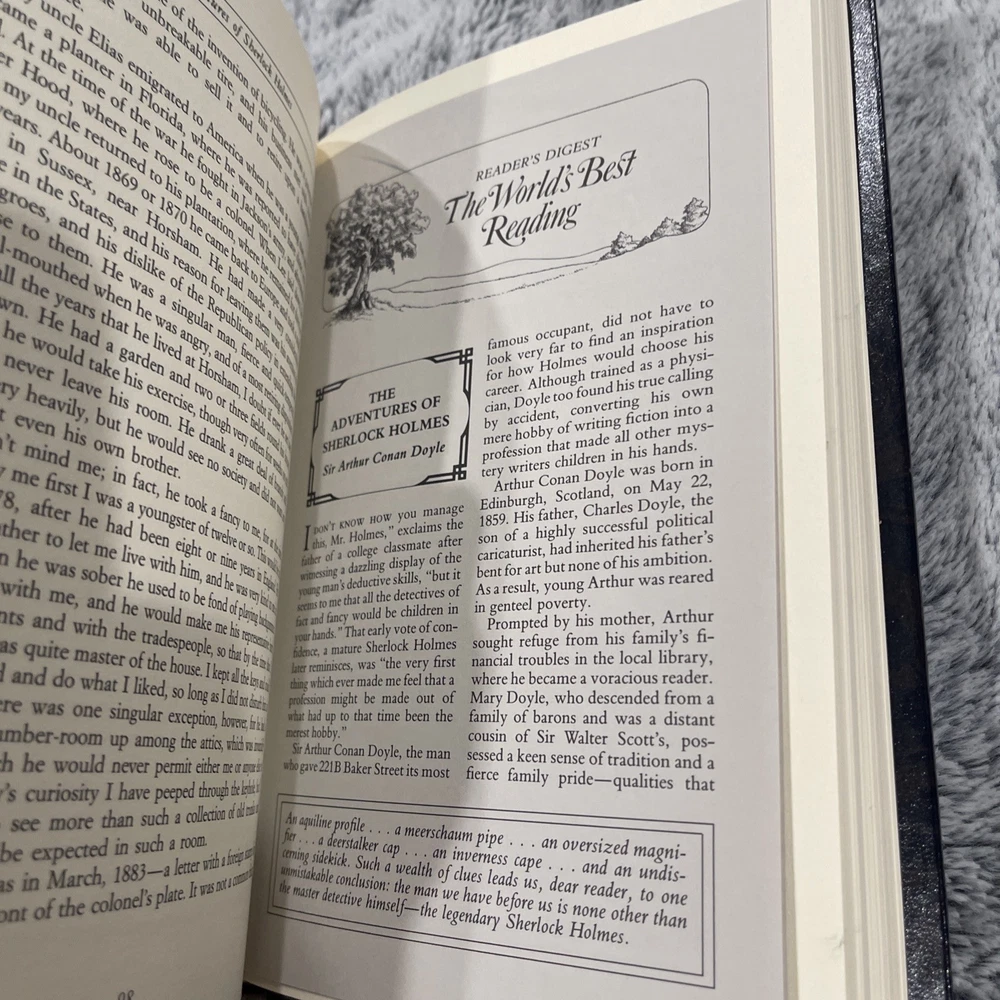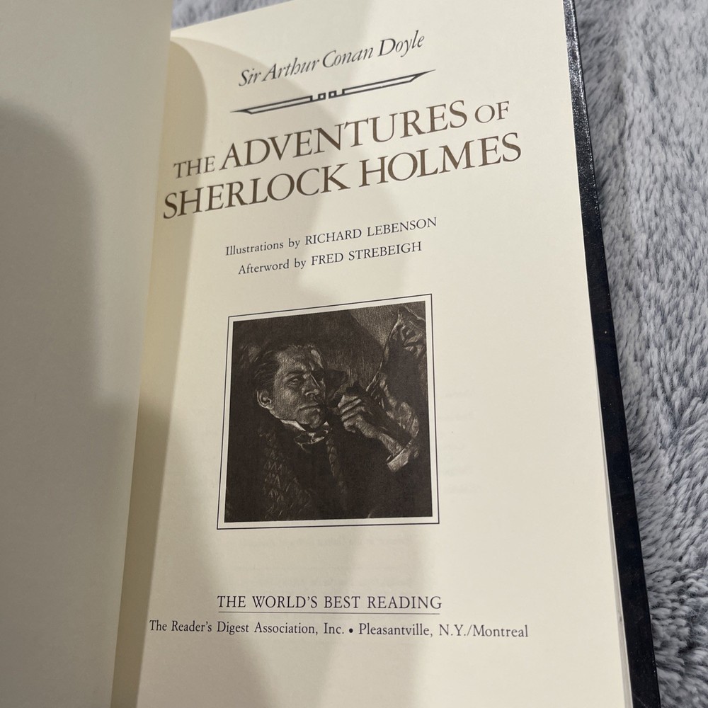 Dive into the world of deduction with "The Adventures of Sherlock Holmes" by Sir Arthur Conan Doyle, presented in a luxurious leather-bound edition by Reader's Digest Association. Published in 1987, this hardcover offers a classic adventure experience through the eyes of one of literature's most iconic characters. Crafted for the enthusiast of the Sherlock Holmes series, this book is a treasure for both avid readers and collectors alike. It brings the captivating tales of Holmes to life in a timeless format, complete with the original English narrative, ensuring the essence of the stories is preserved intact.